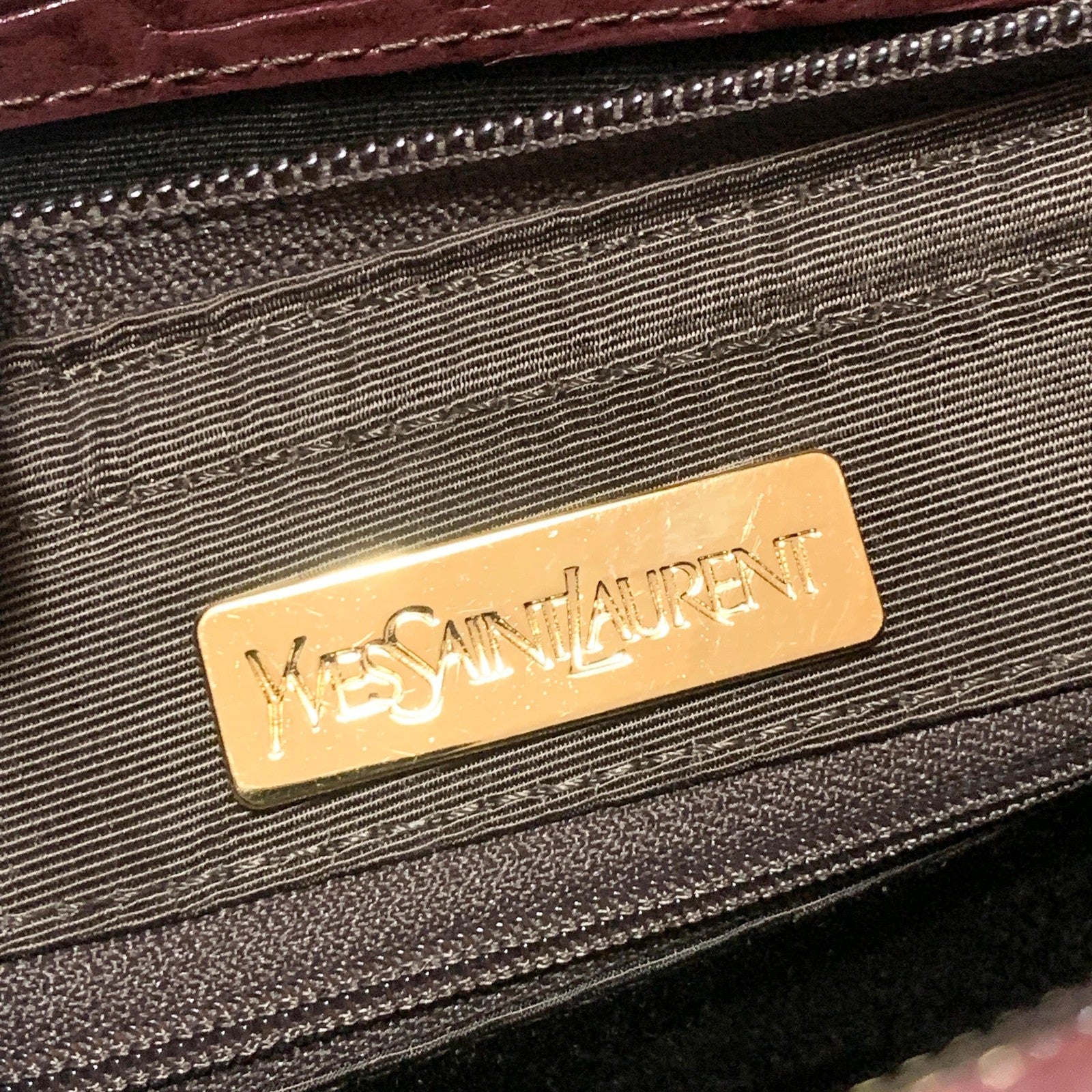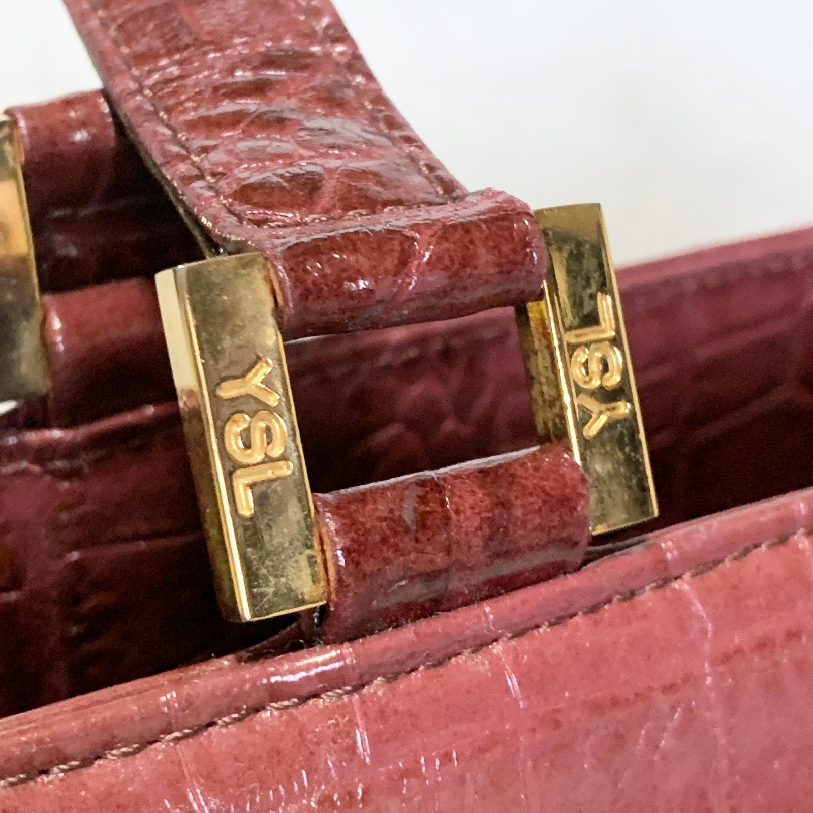 Saint Laurent Bag Logo Hand Tote Purse Leather Red Gold Used Authentic