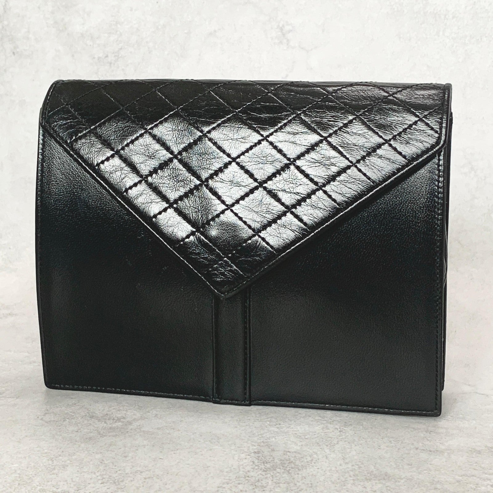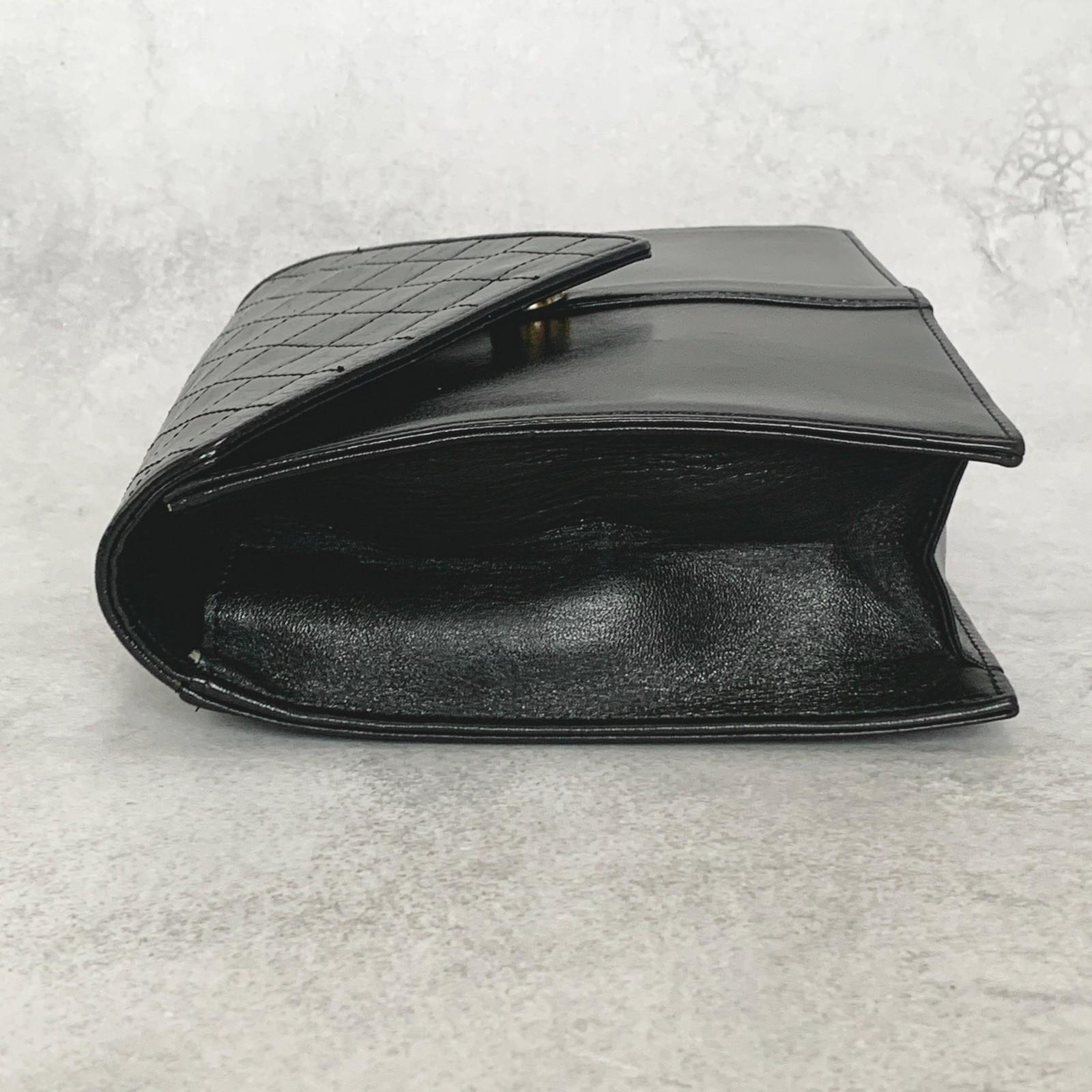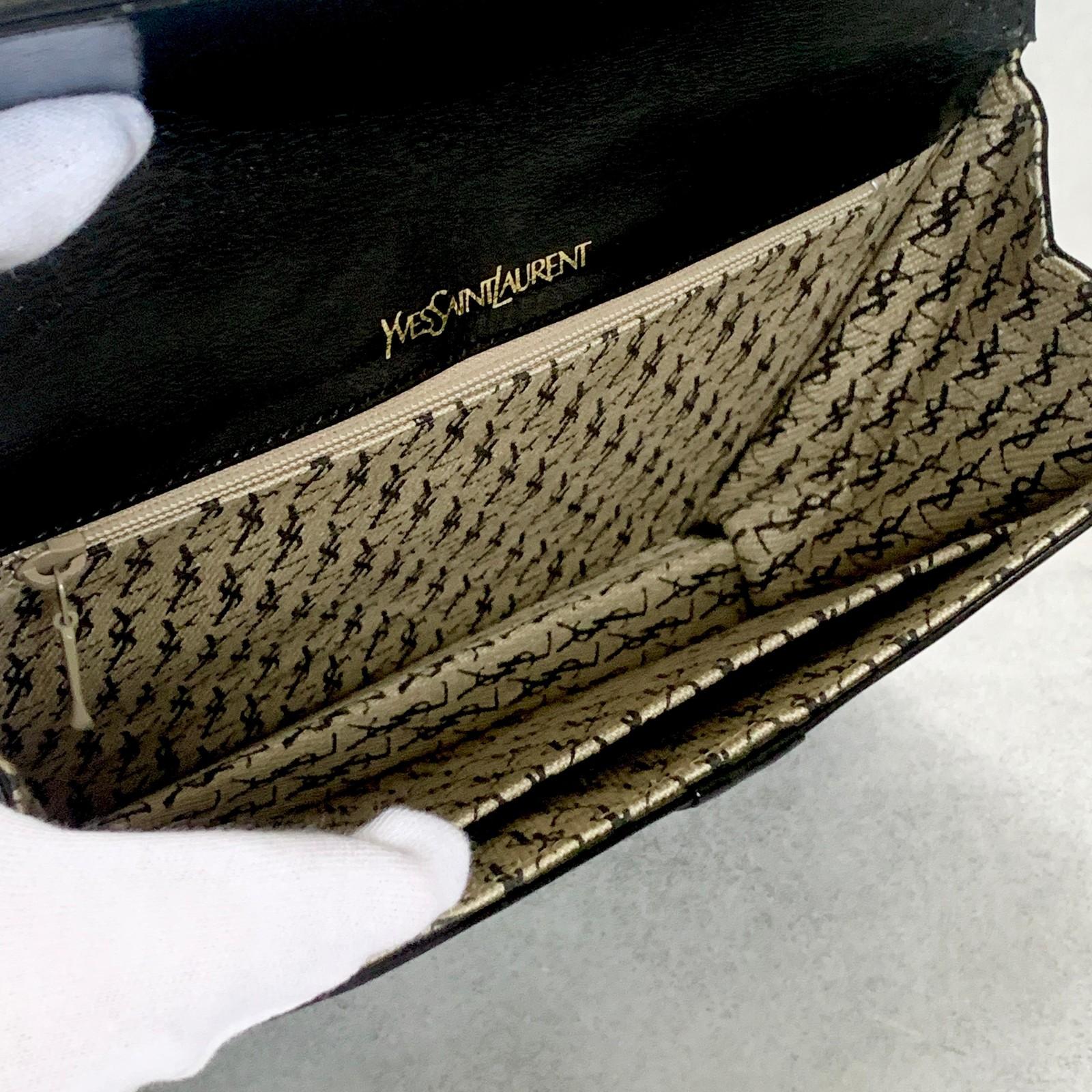 Saint Laurent Bag YSL Clutch Purse Hand Leather Black Gold Used Authentic