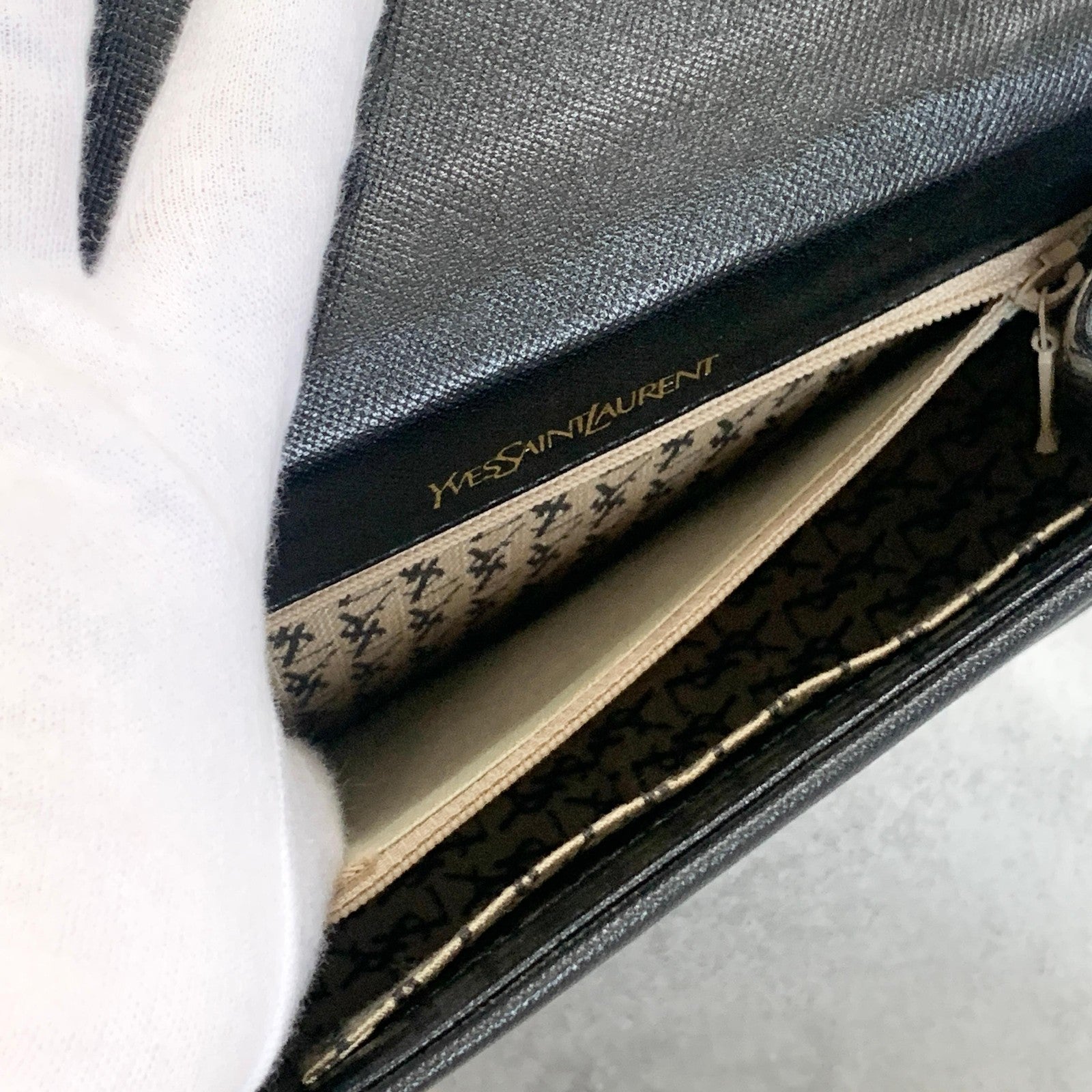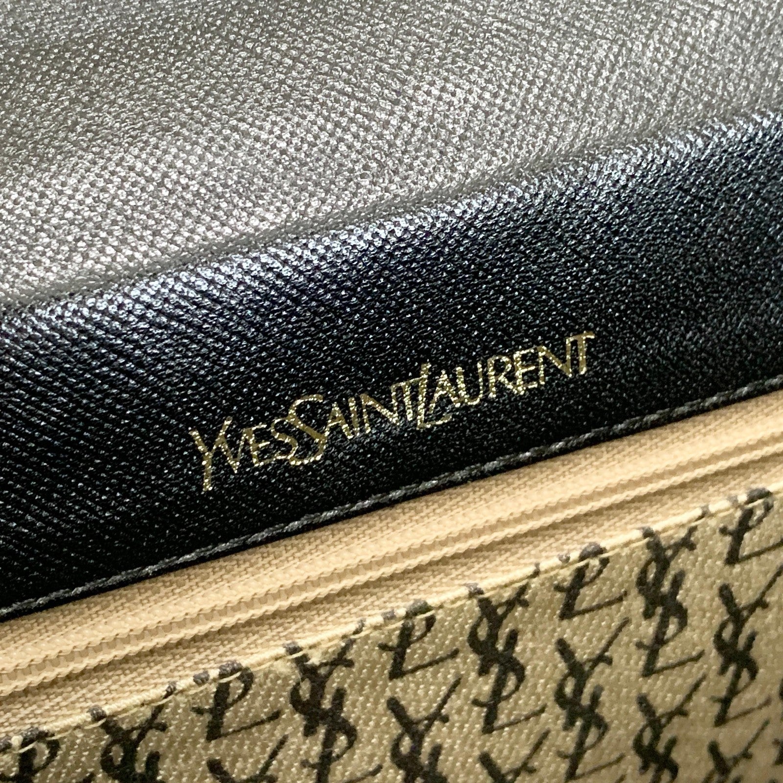 Saint Laurent Bag YSL Shoulder Purse Leather Black Gold Vintage Authentic
