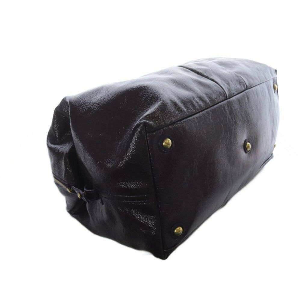 Saint Laurent Boston Hand Bag Tote Purse Y Line Patent Leather Dark Purple Auth