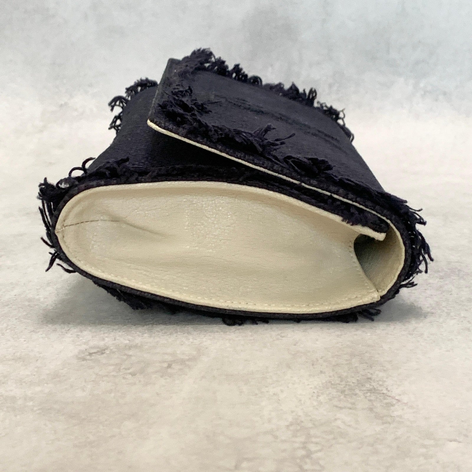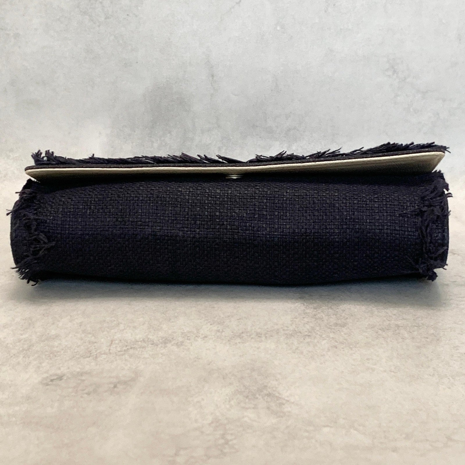 Saint Laurent Cassandra YSL Clutch Bag Purse Handbag Canvas Leather Navy Auth