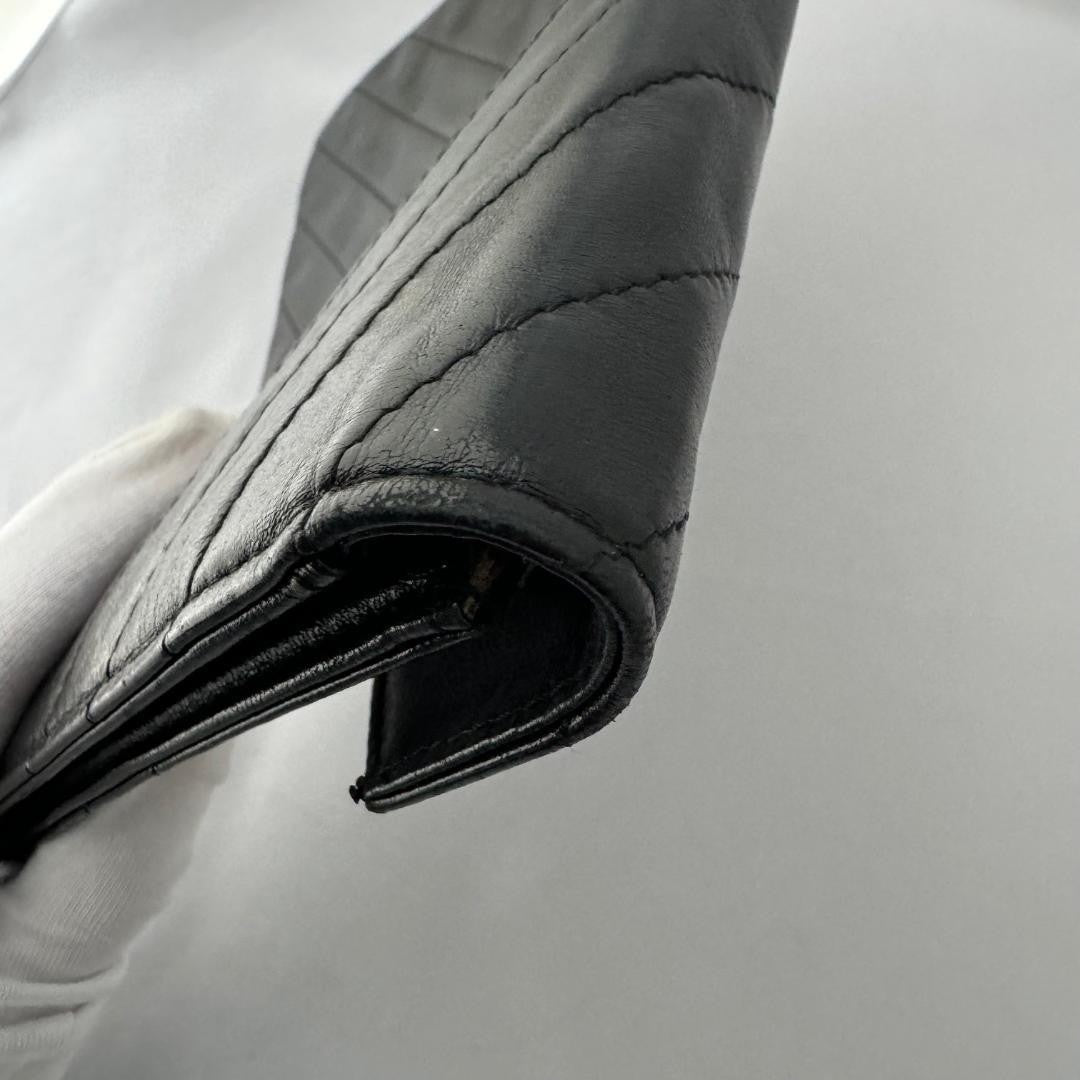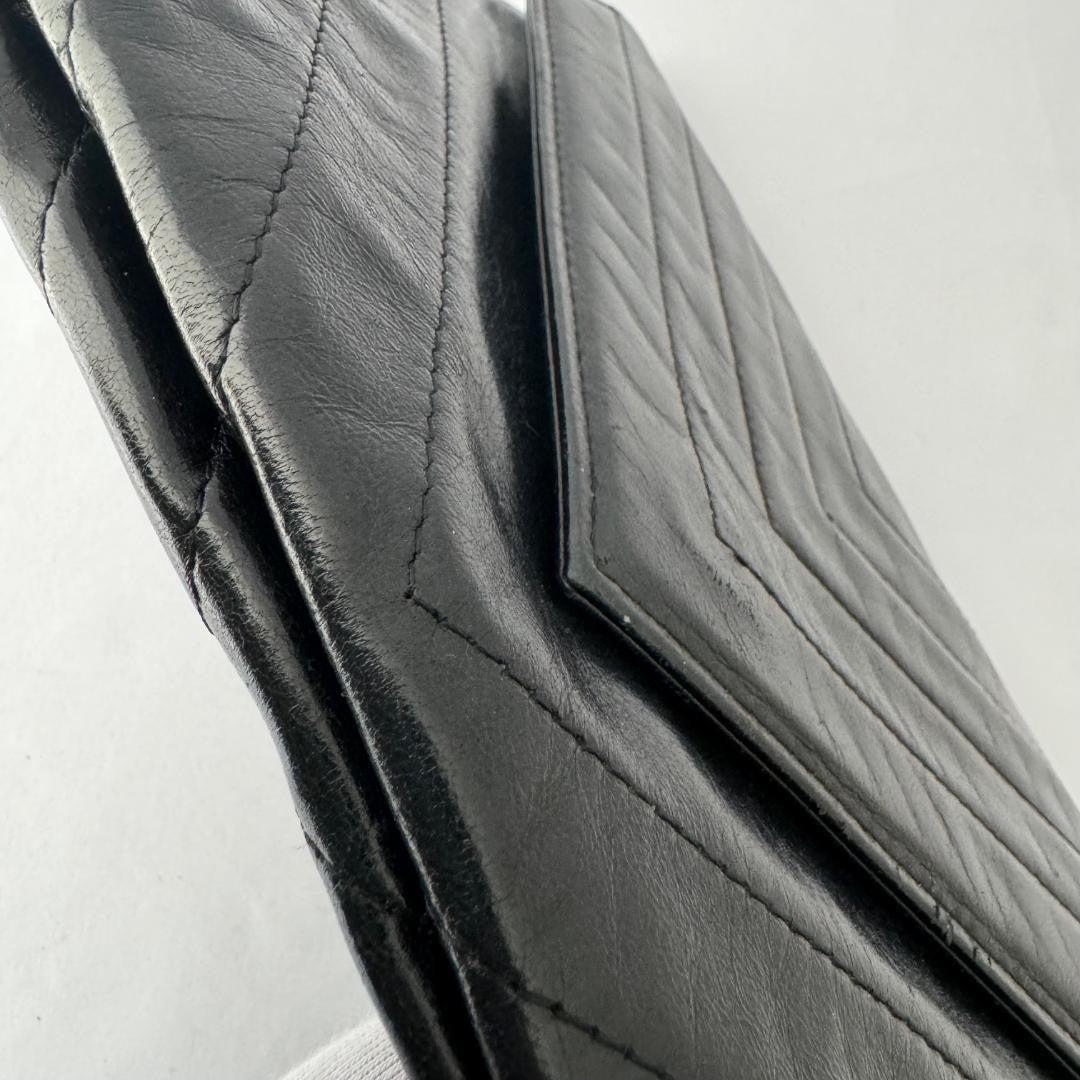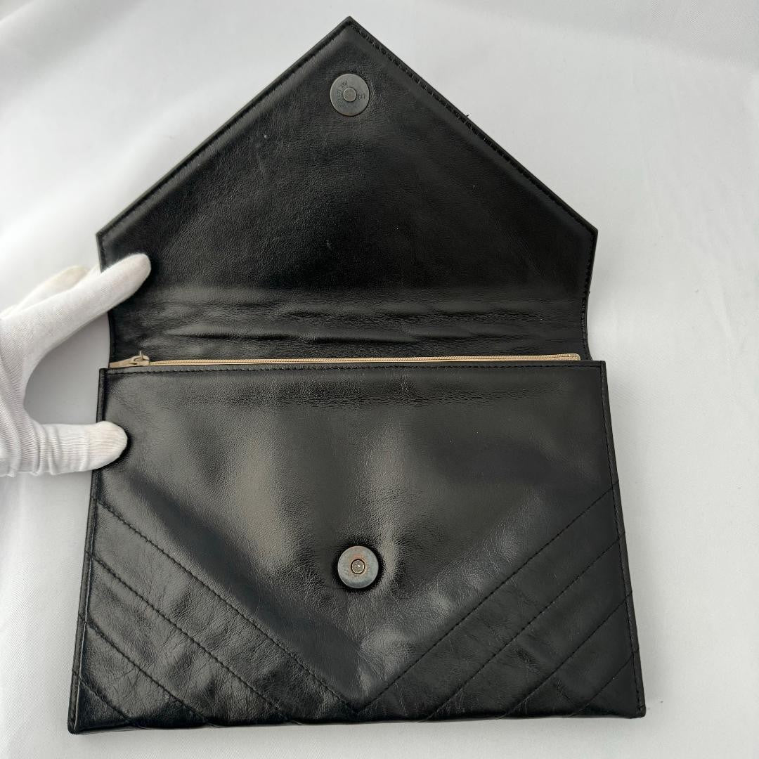 Saint Laurent Clutch Bag Second Bag V stitch Quilting Leather Black Authentic