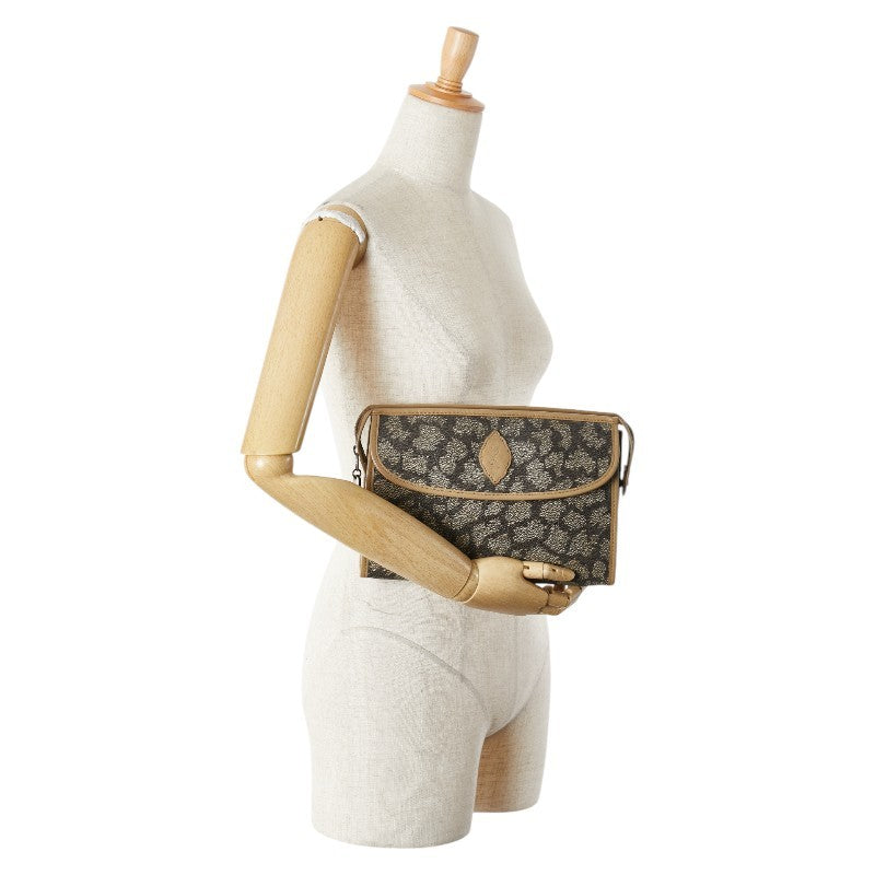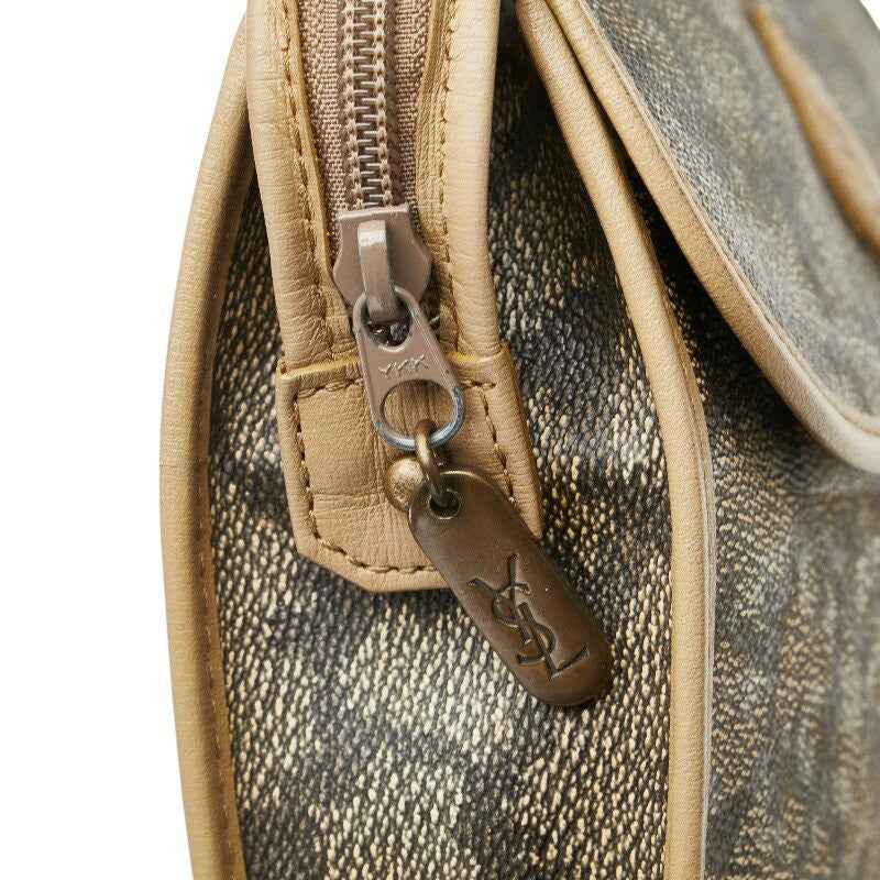 Saint Laurent Clutch Bag Second Bag YSL Cassandra PVC Leather Brown Beige Auth