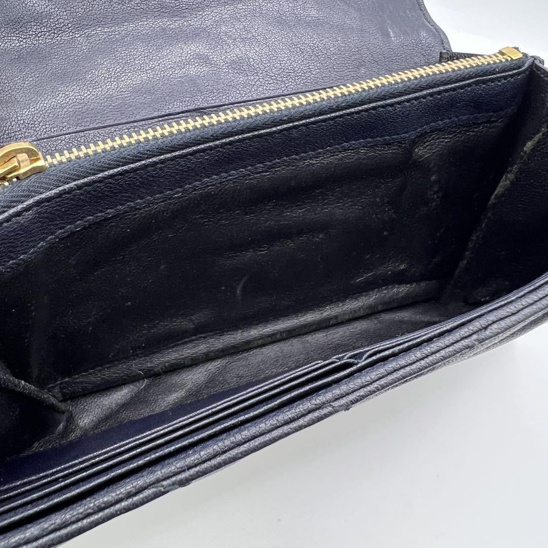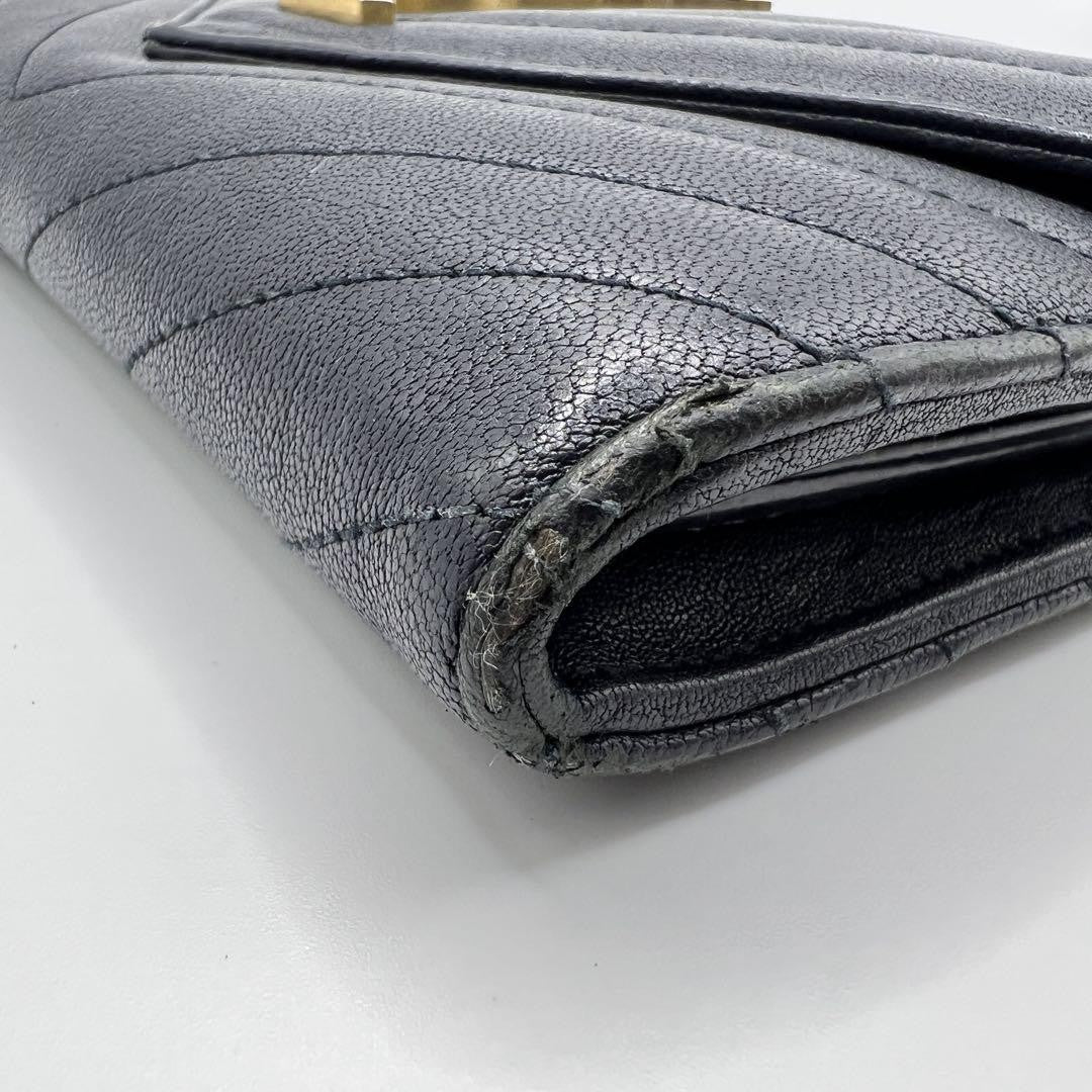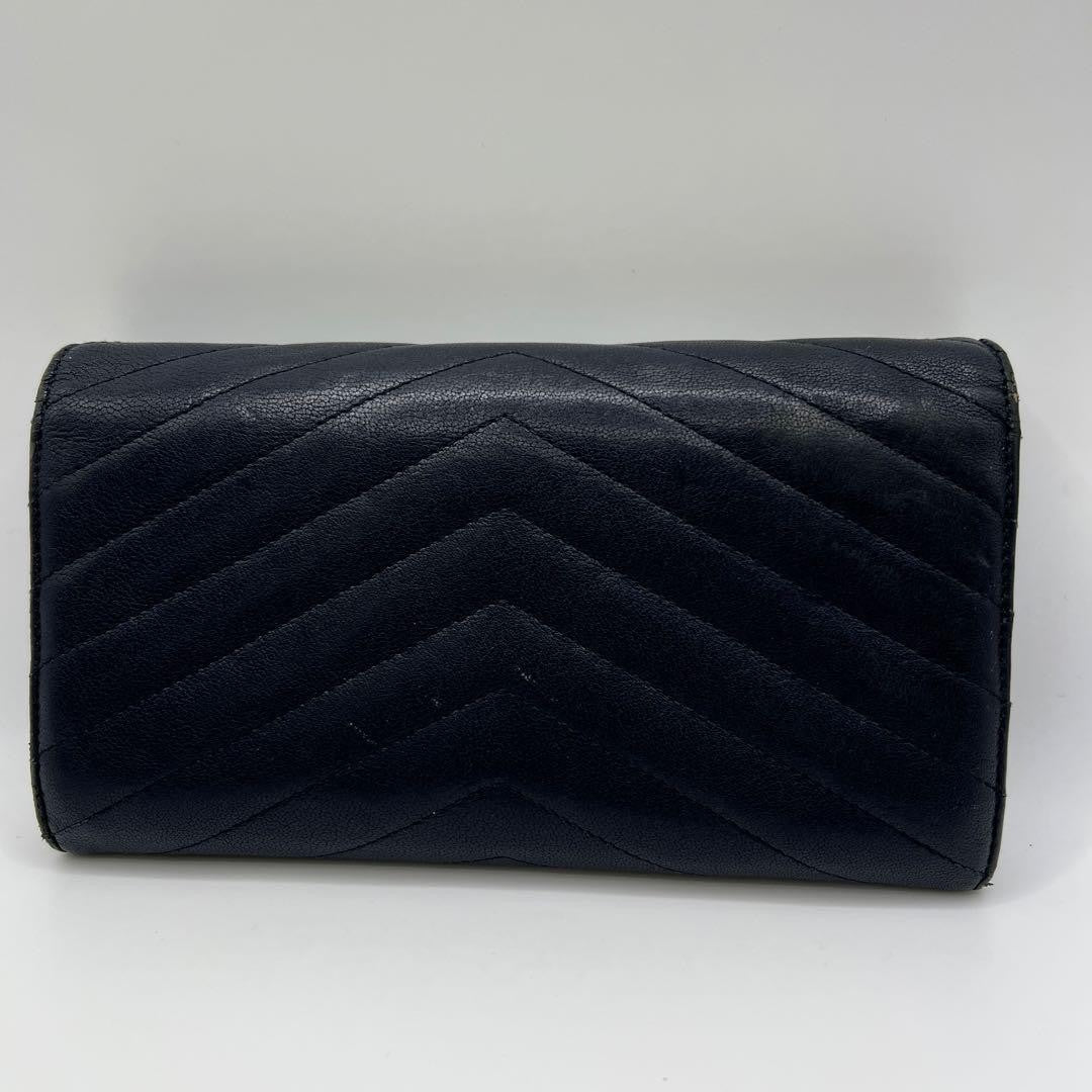 Saint Laurent Flap Wallet Long Purse YSL Cassandra Leather Navy Authentic