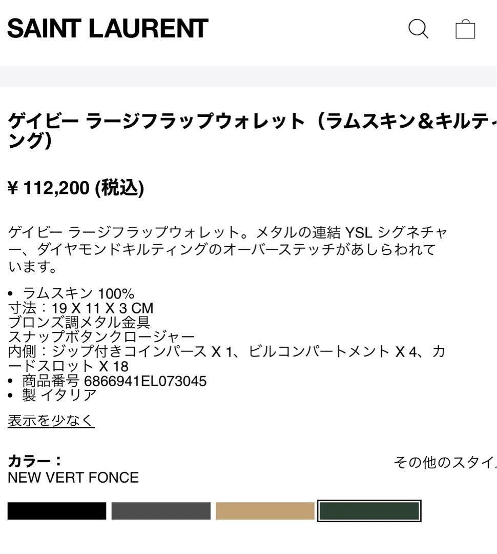Saint Laurent Flap Wallet Long Purse YSL Cassandra Quilting Khaki Authentic