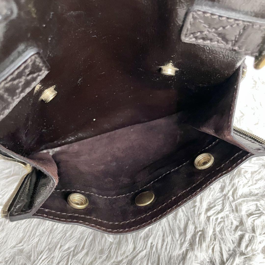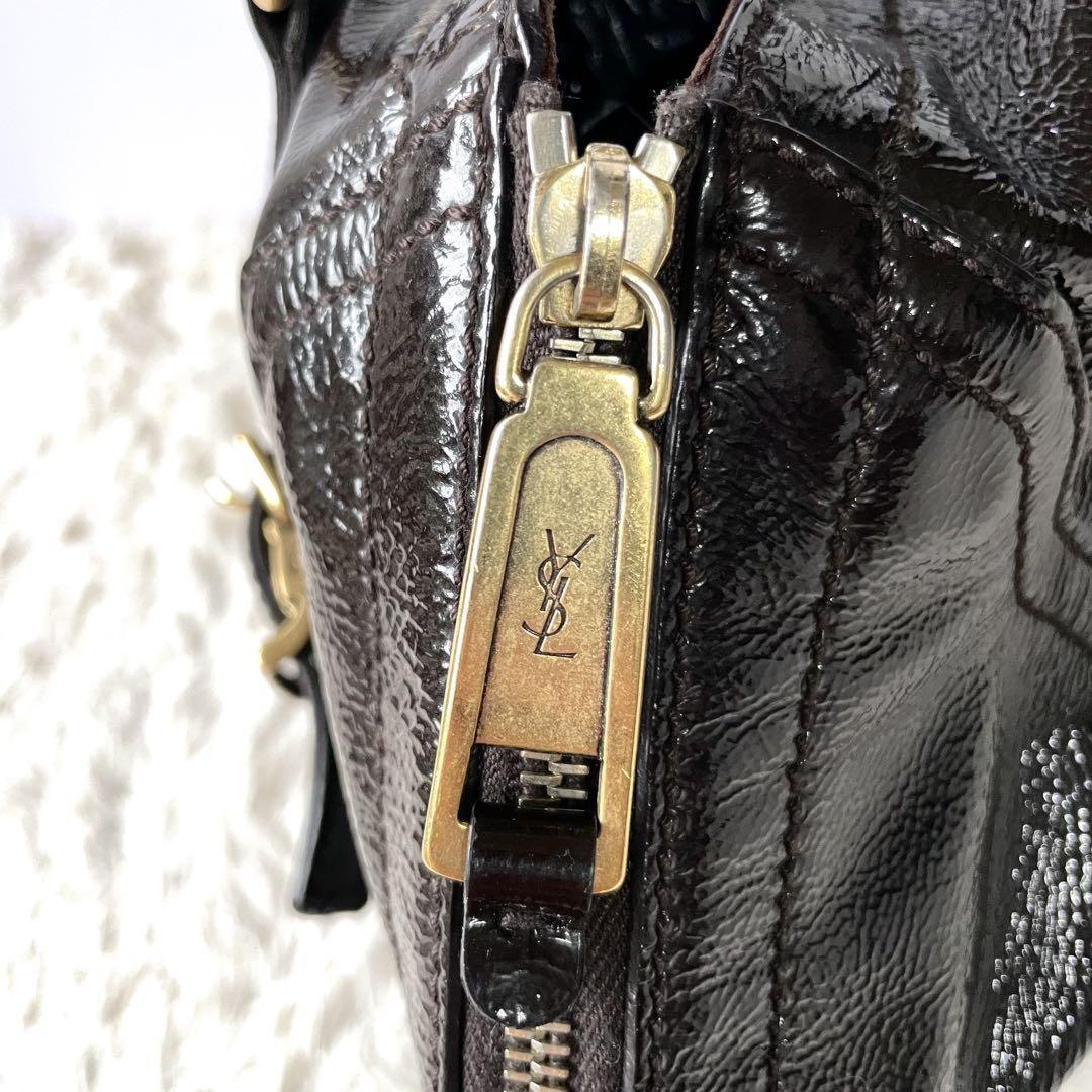 Saint Laurent Hand Bag Tote Purse Downtown Patent Leather Dark Brown Authentic