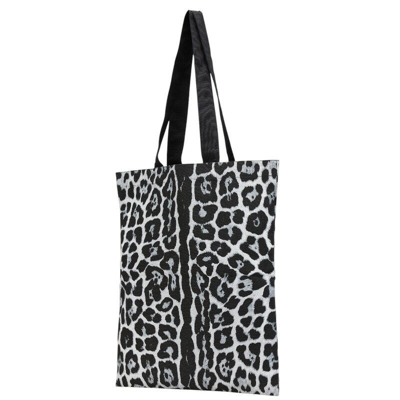 Saint Laurent Hand Bag Tote Purse Leopard Cotton Black Gray Authentic