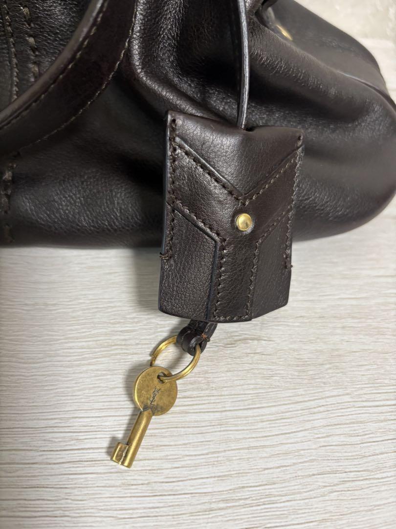 Saint Laurent Hand Bag Tote Purse MUSE Leather Dark Brown Authentic