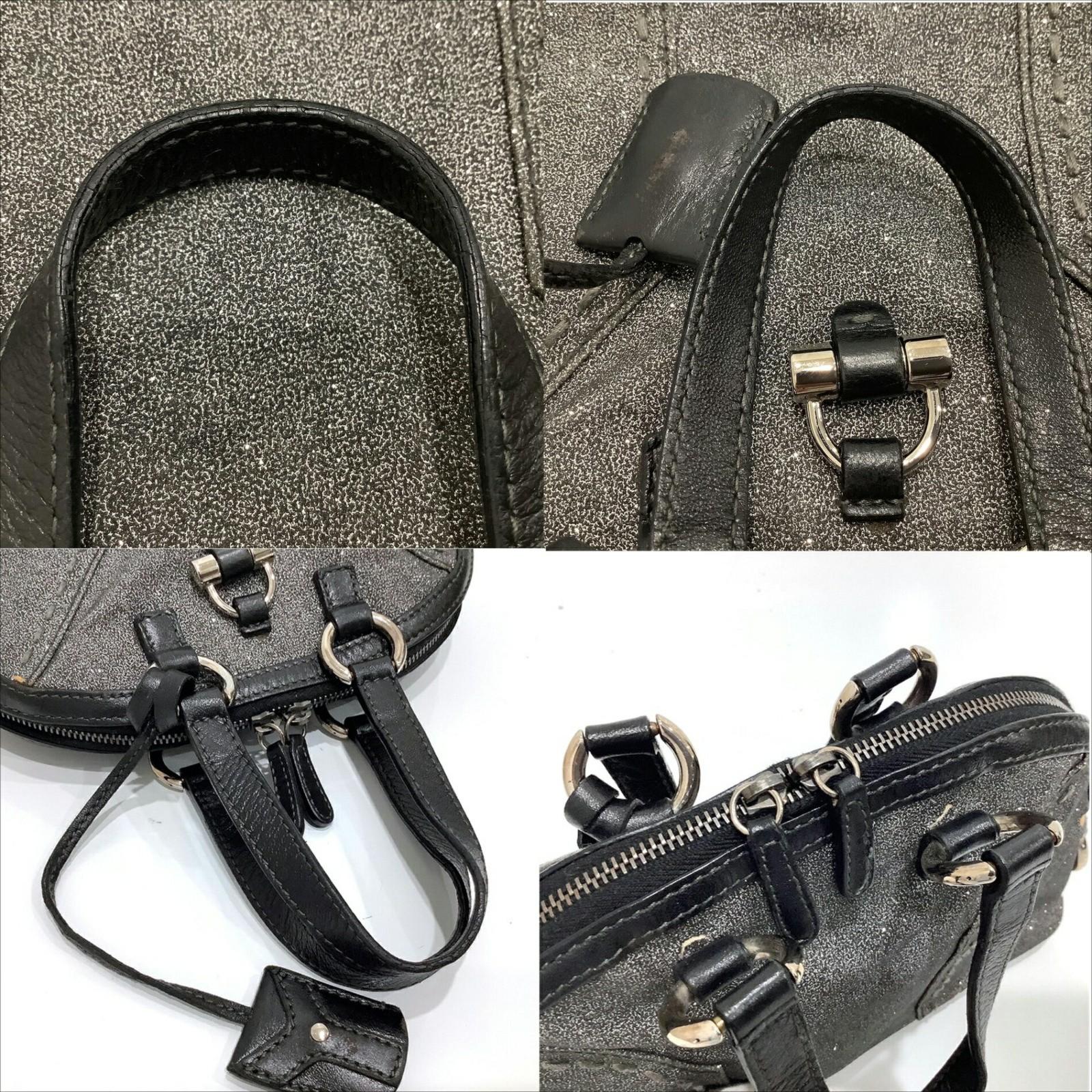 Notes: Shape is out of shape. Scuffs, scratches, and tears. Edge cracks. Fraying near the opening. Peeling at the base of the handle. Multiple tears due to scuffing can be seen.