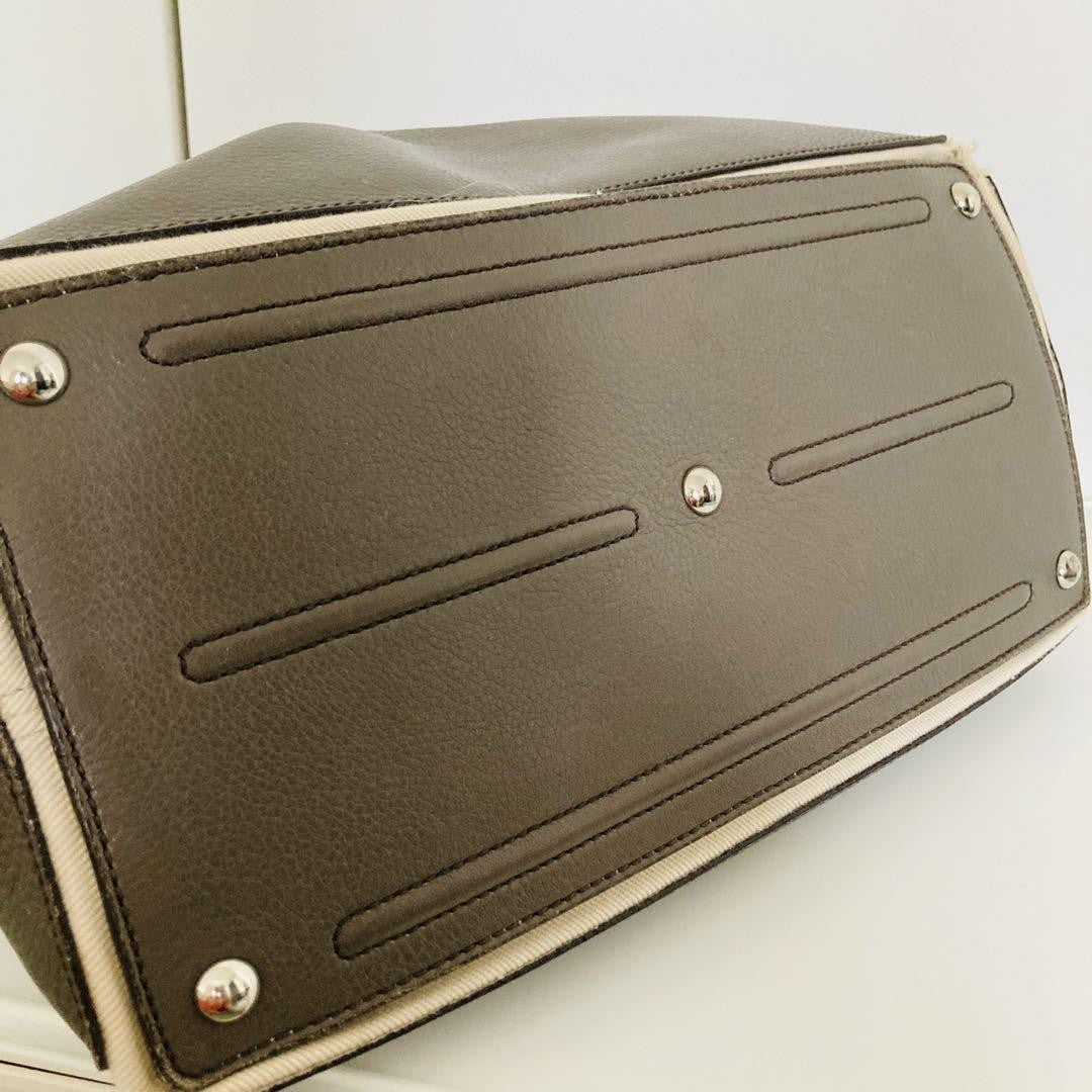 Saint Laurent Hand Bag Tote Purse Muse Toe Leather Canvas Greige Authentic