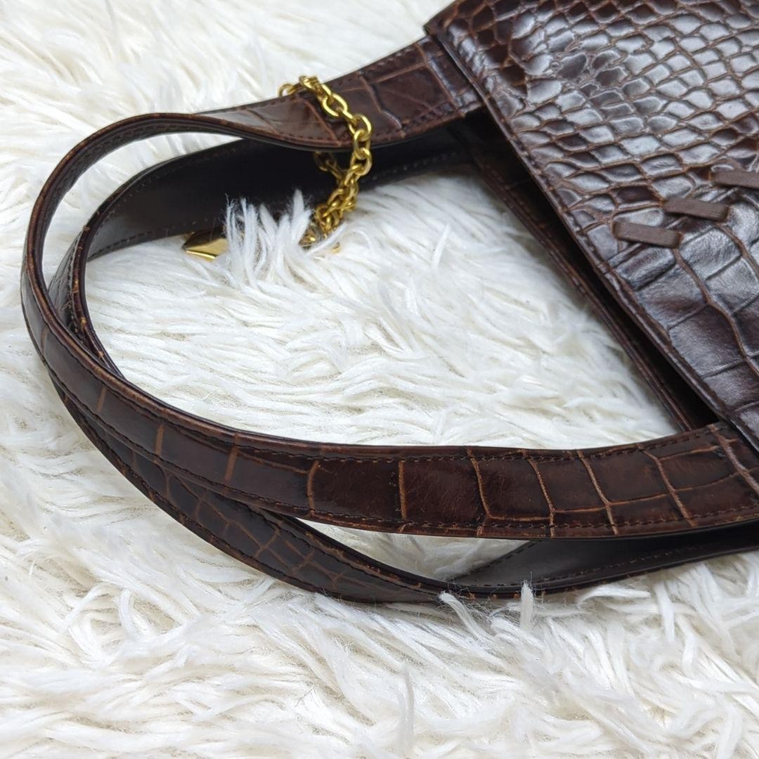 Saint Laurent Hand Bag Tote Purse stitch Leather Bordeaux Brown Authentic