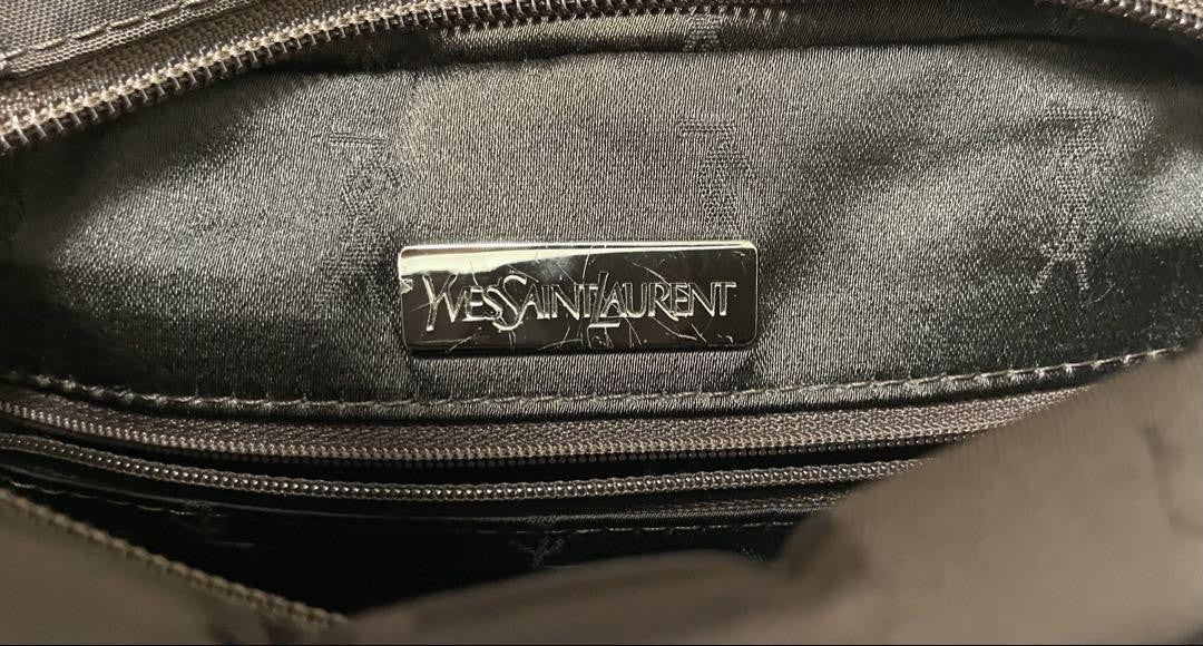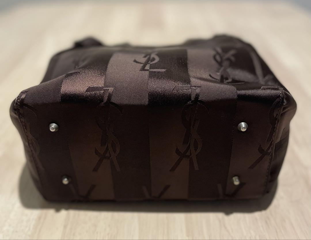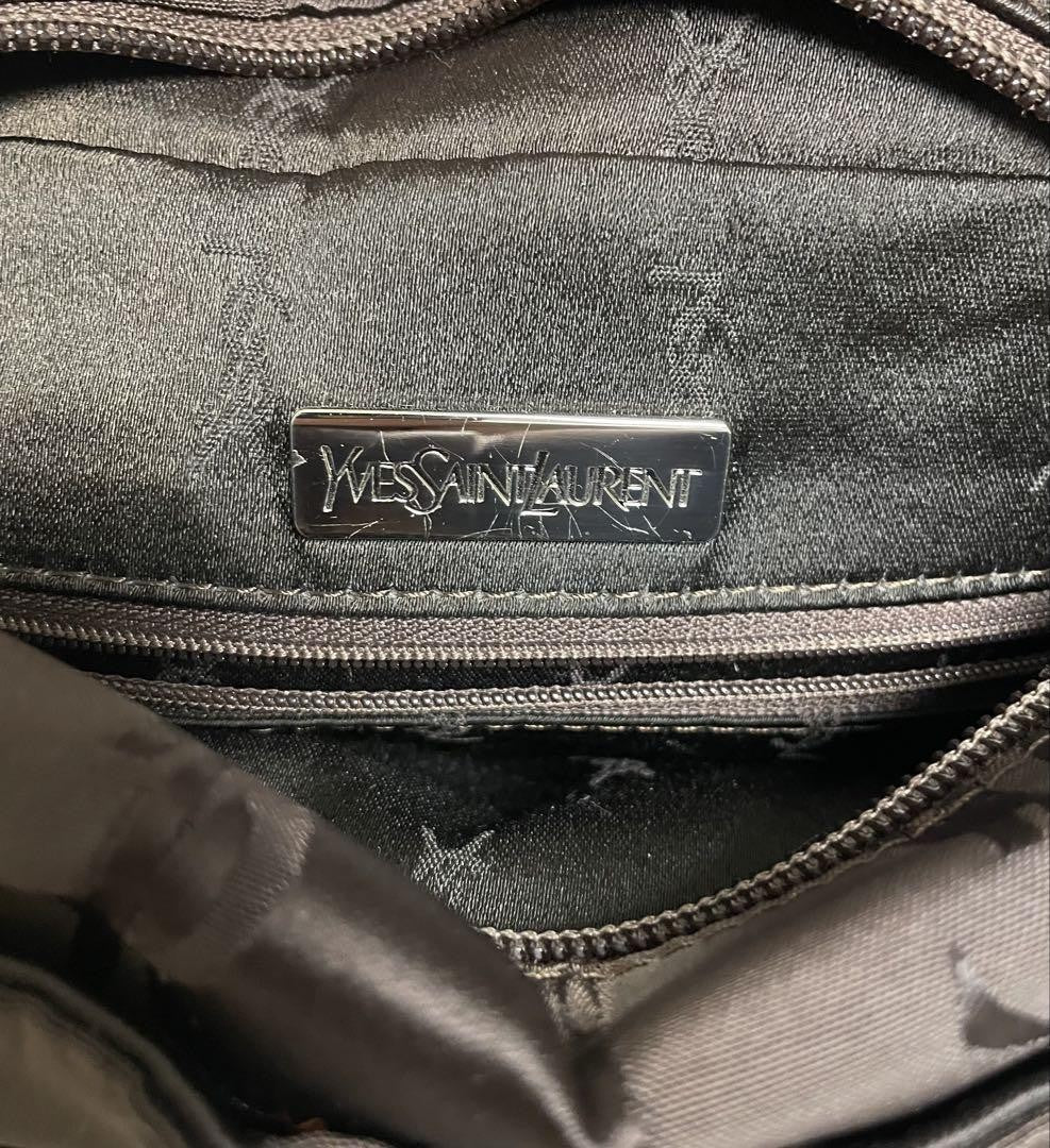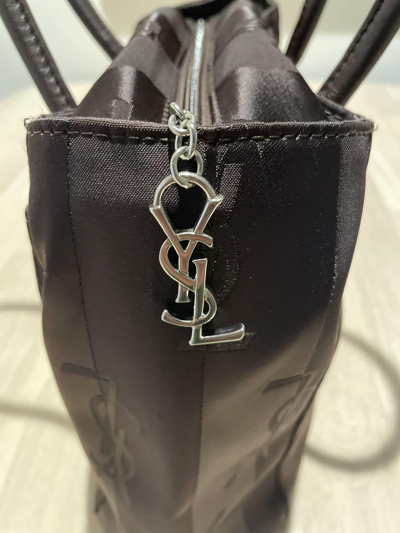 Saint Laurent Hand Bag Tote Purse YSL Cassandra Nylon Leather Dark Brown Auth