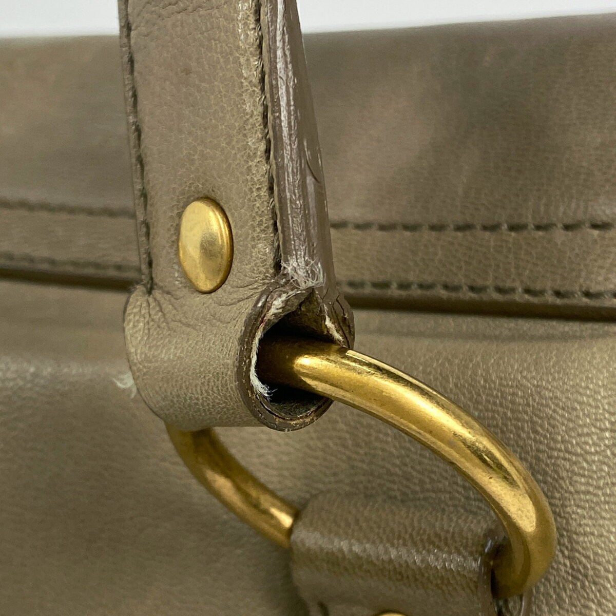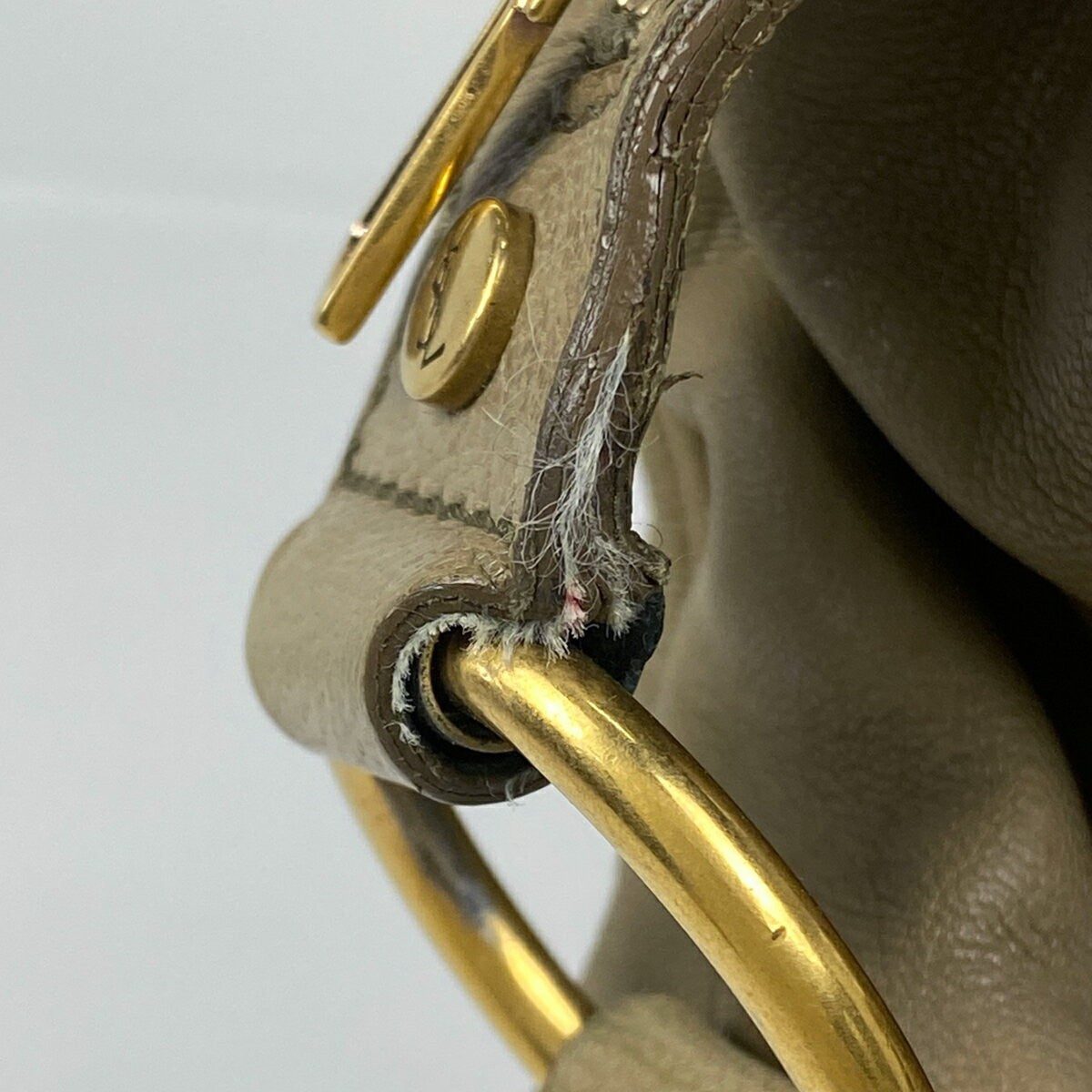 Saint Laurent Hand Shoulder Bag Tote Purse 2way Logo Leather Beige Authentic