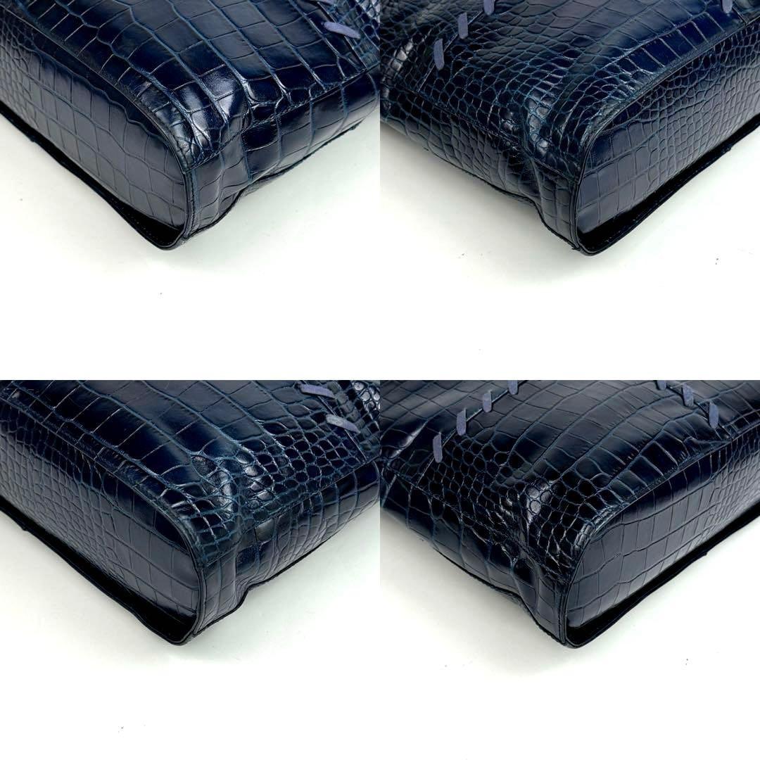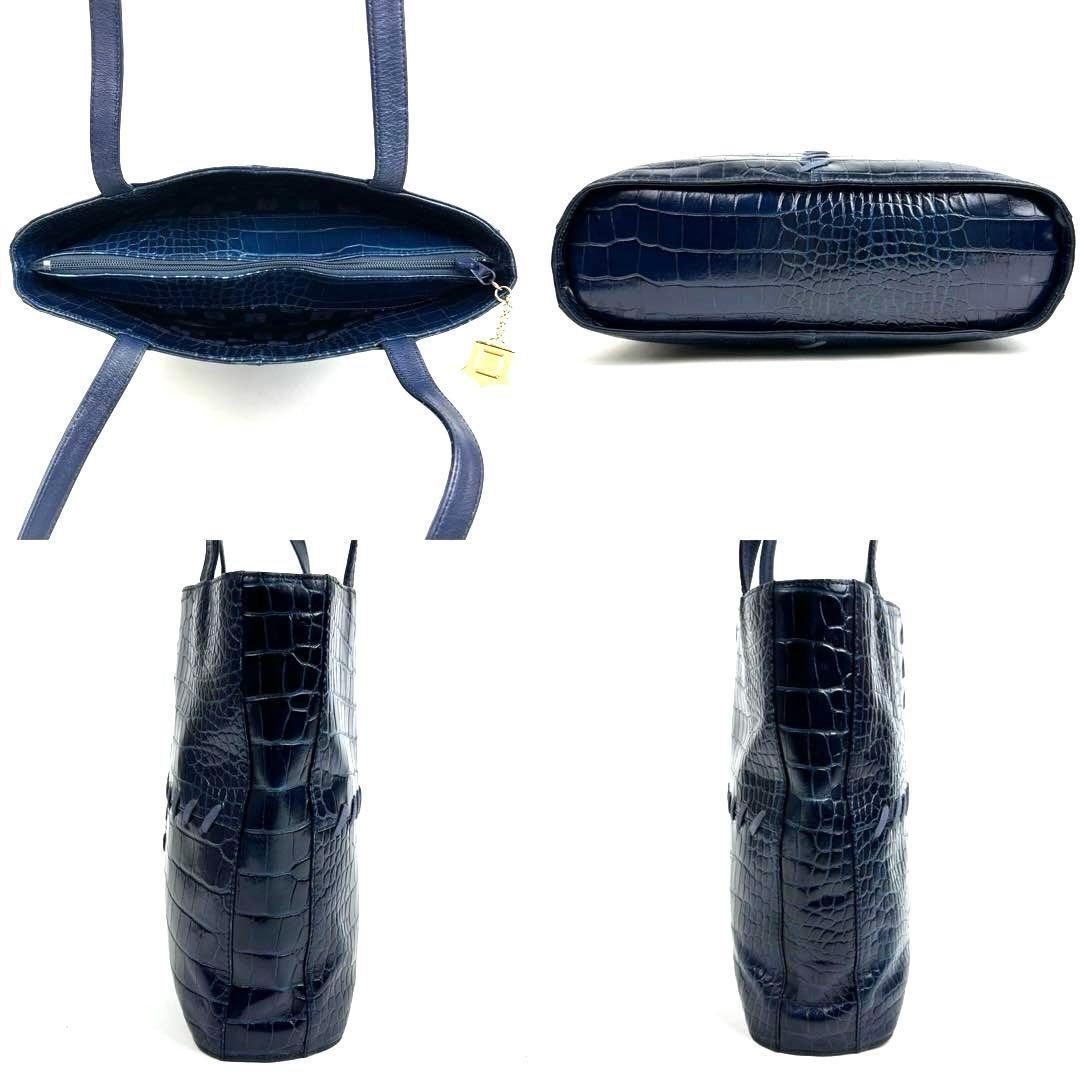 Saint Laurent Hand Shoulder Bag Tote Purse Leather Navy Authentic