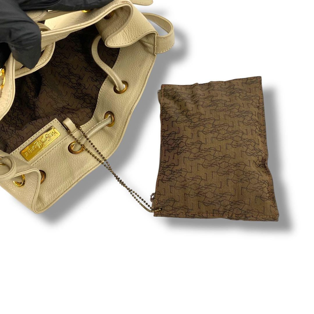 Saint Laurent Hand Shoulder Bag Tote Purse YSL Cassandra Leather Off White Beige