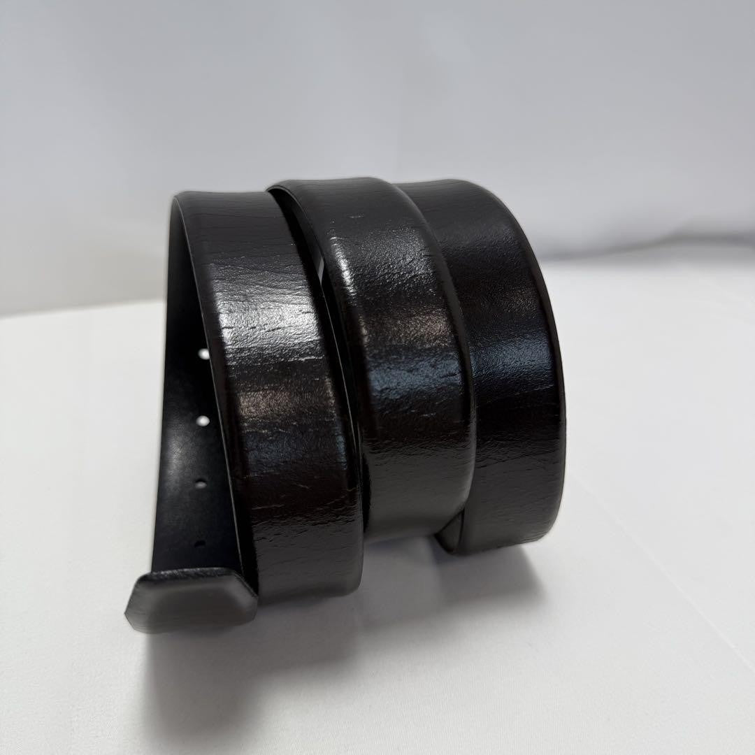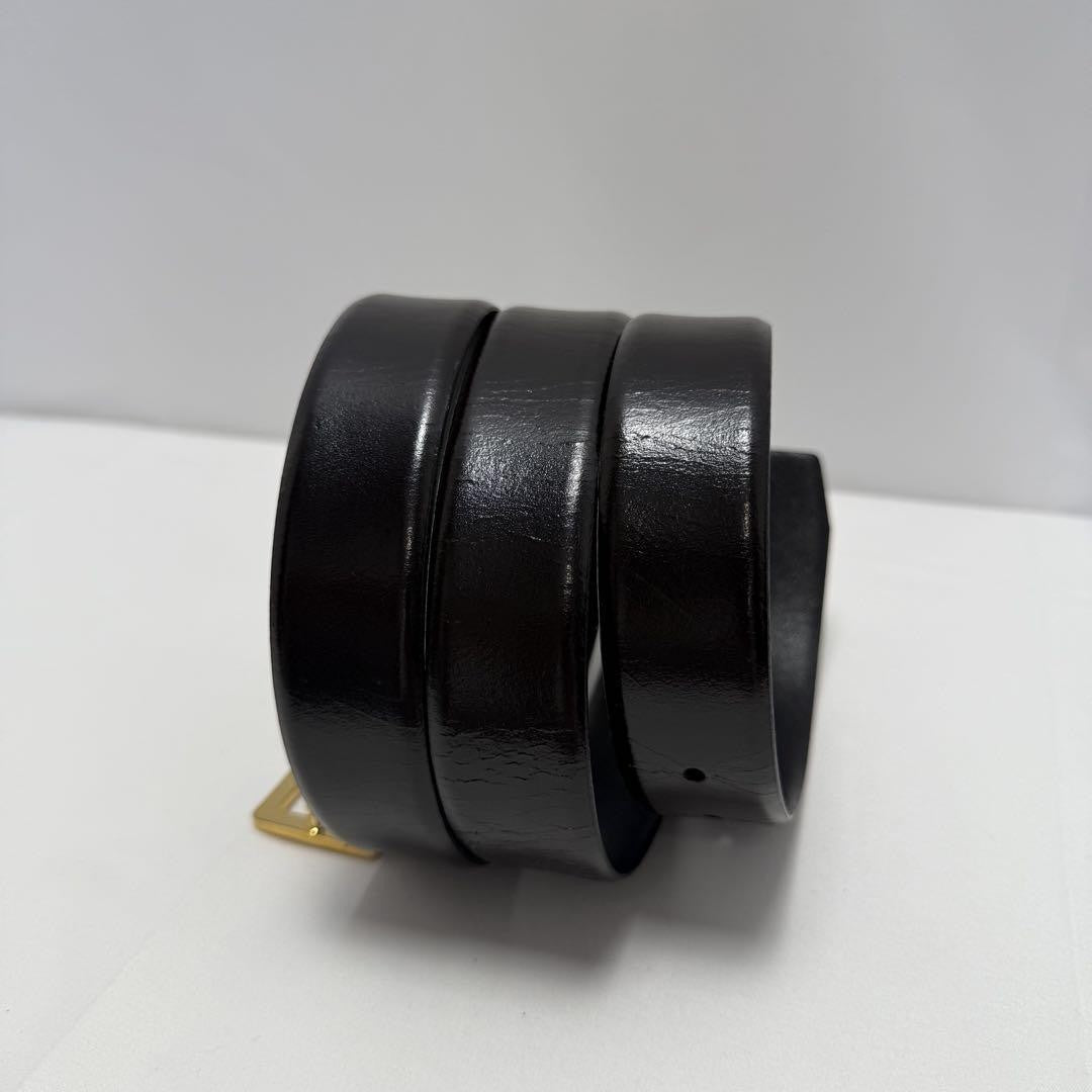 Saint Laurent Men's Belt Logo Leather Black Gold Authentic