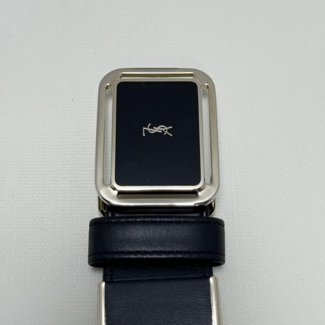 Saint Laurent Men's Belt YSL Cassandra Leather Black Silver Authentic
