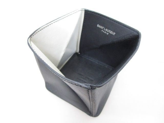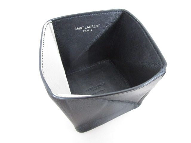 SAINT LAURENT PARIS Coin Case Wallet Purse Compact Logo Black White Authentic