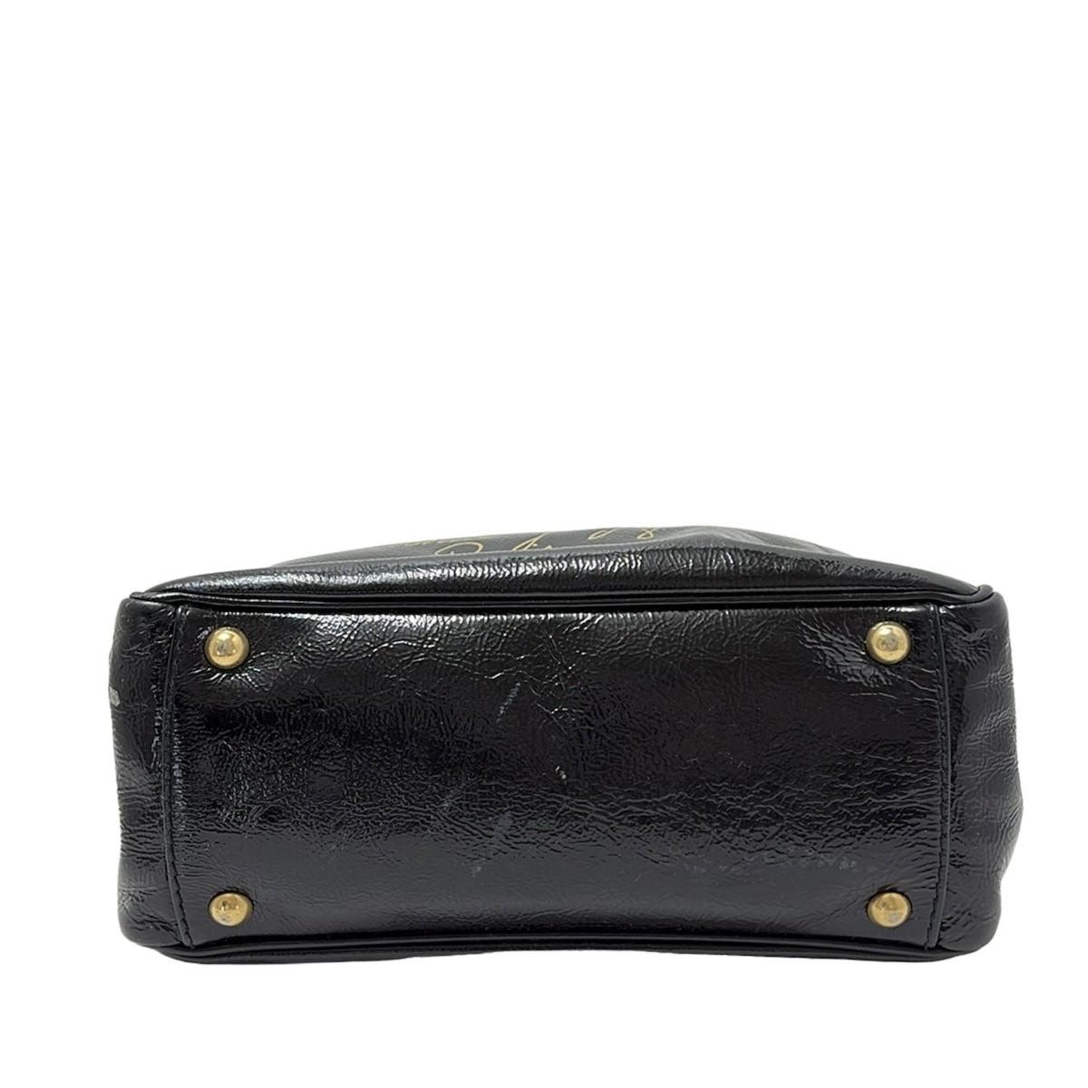 Saint Laurent rivegauche Hand Bag Tote Purse Patent Leather Black Gold Authentic