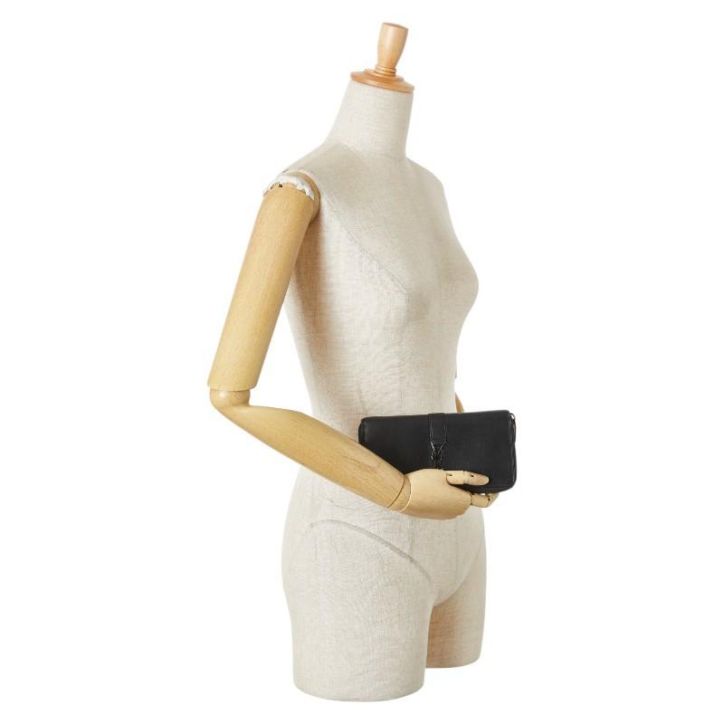 Saint Laurent Round Zip Long Wallet Purse YSL Cassandra Leather Black Auth
