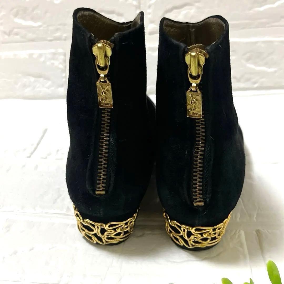 Saint Laurent Short Boots Shoes EU 35 US 5 Suede Black Authentic