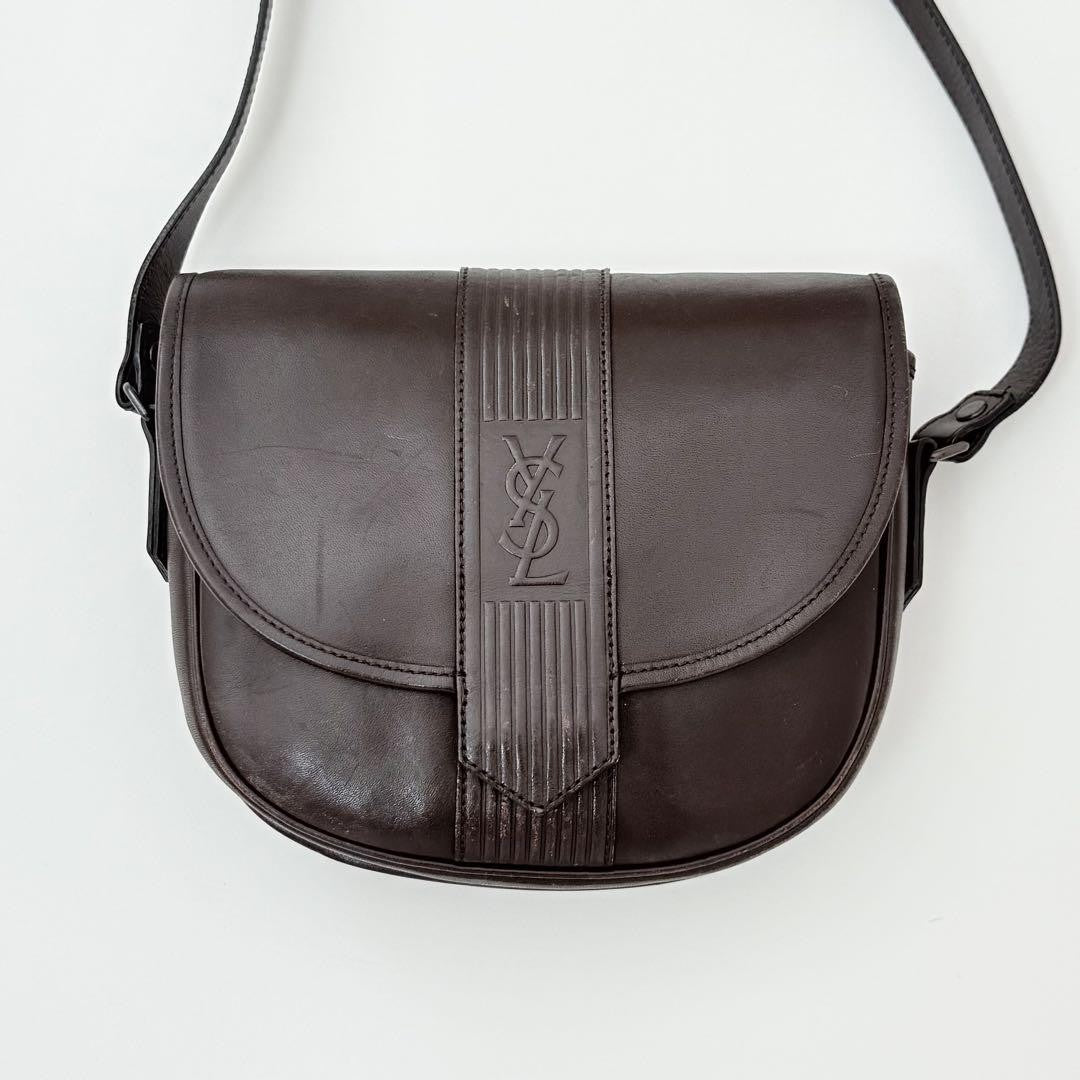 Saint Laurent Shoulder Bag Purse YSL Cassandra Leather Dark Brown Authentic