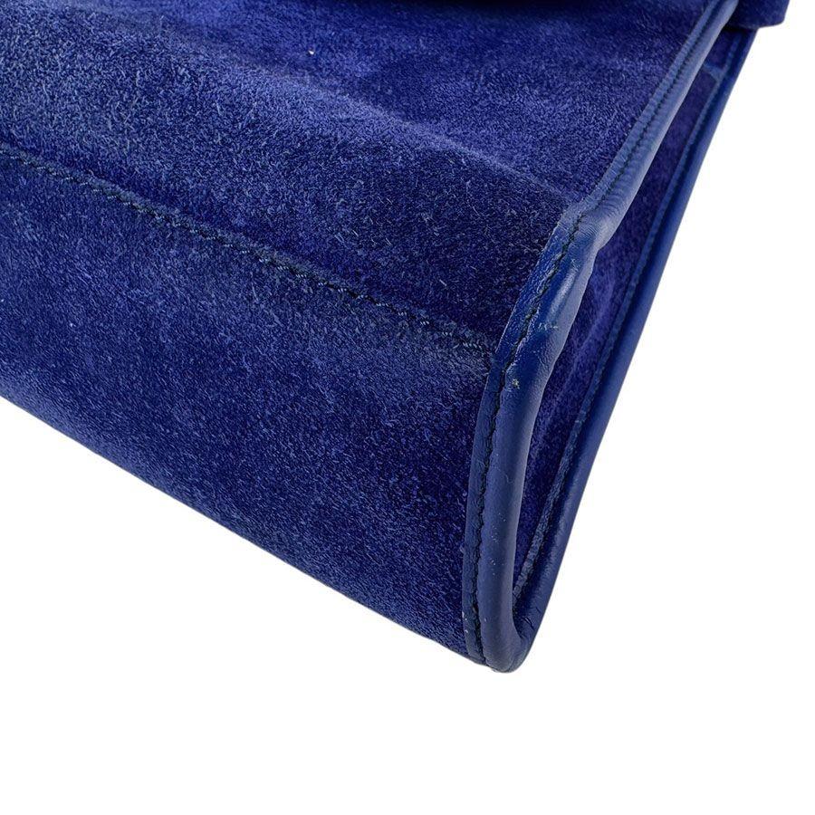 Saint Laurent Shoulder Bag Purse YSL Cassandra Suede Blue Authentic