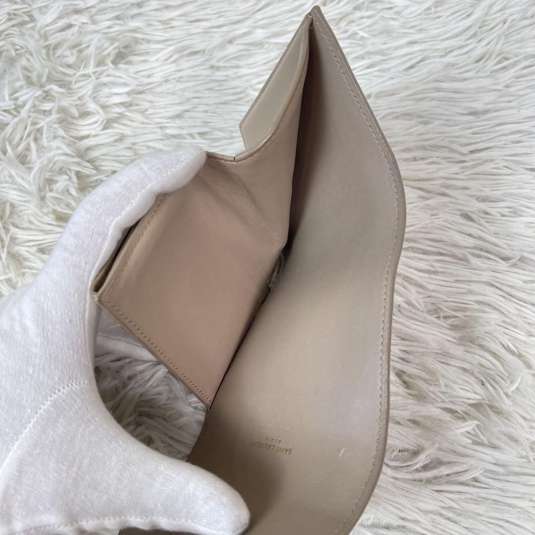 Saint Laurent Tri-fold Wallet Compact Purse YSL Cassandra Pink Beige Authentic