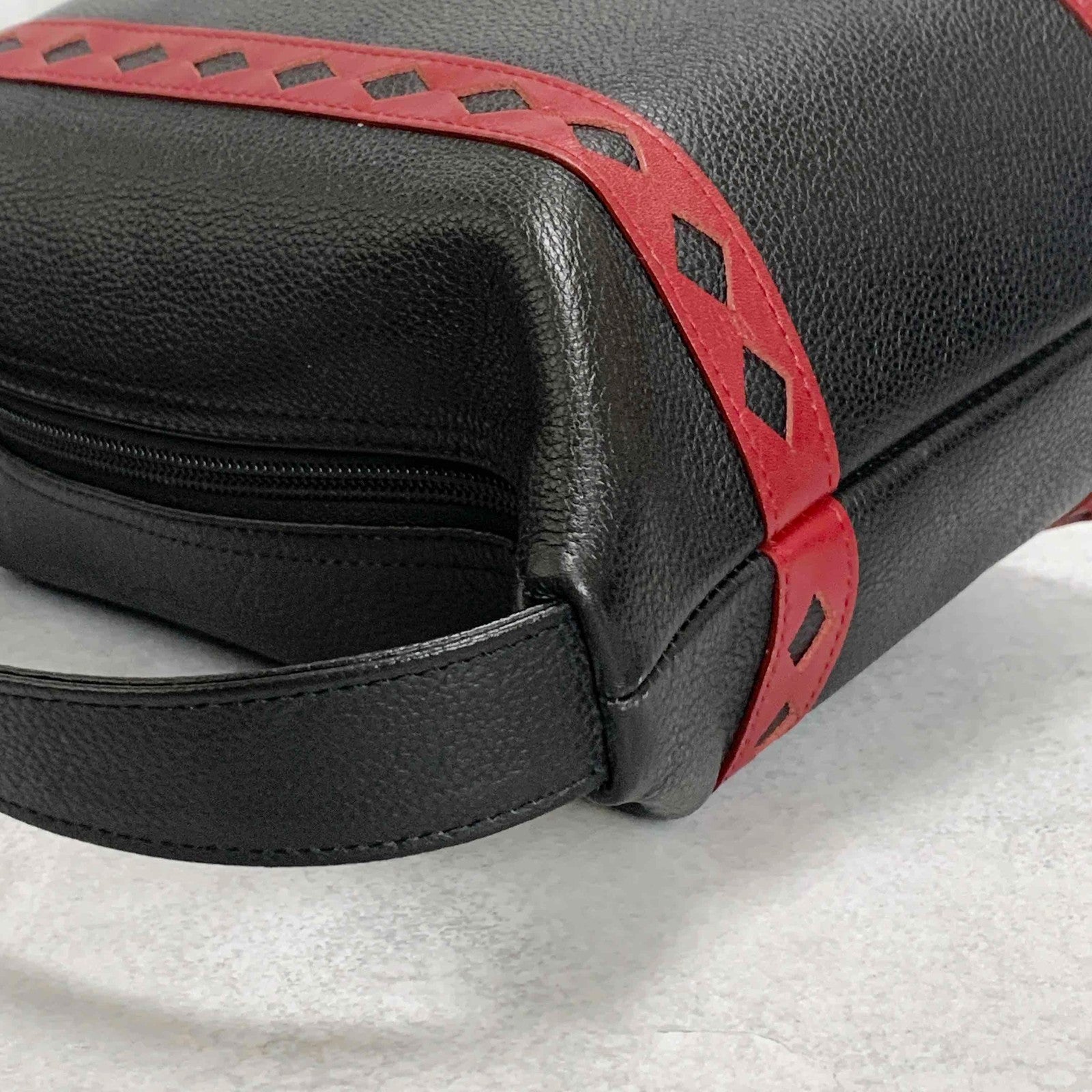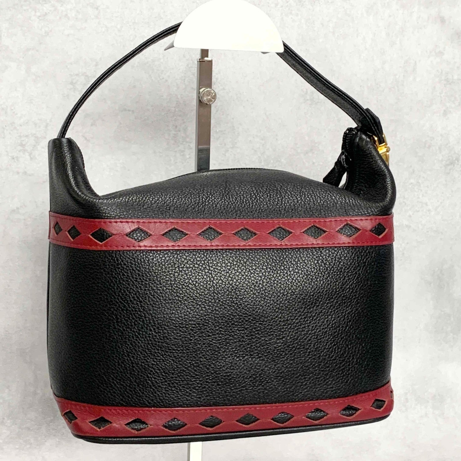 Saint Laurent Vanity Bag Logo YSL Black Red Authentic Leather Vintage