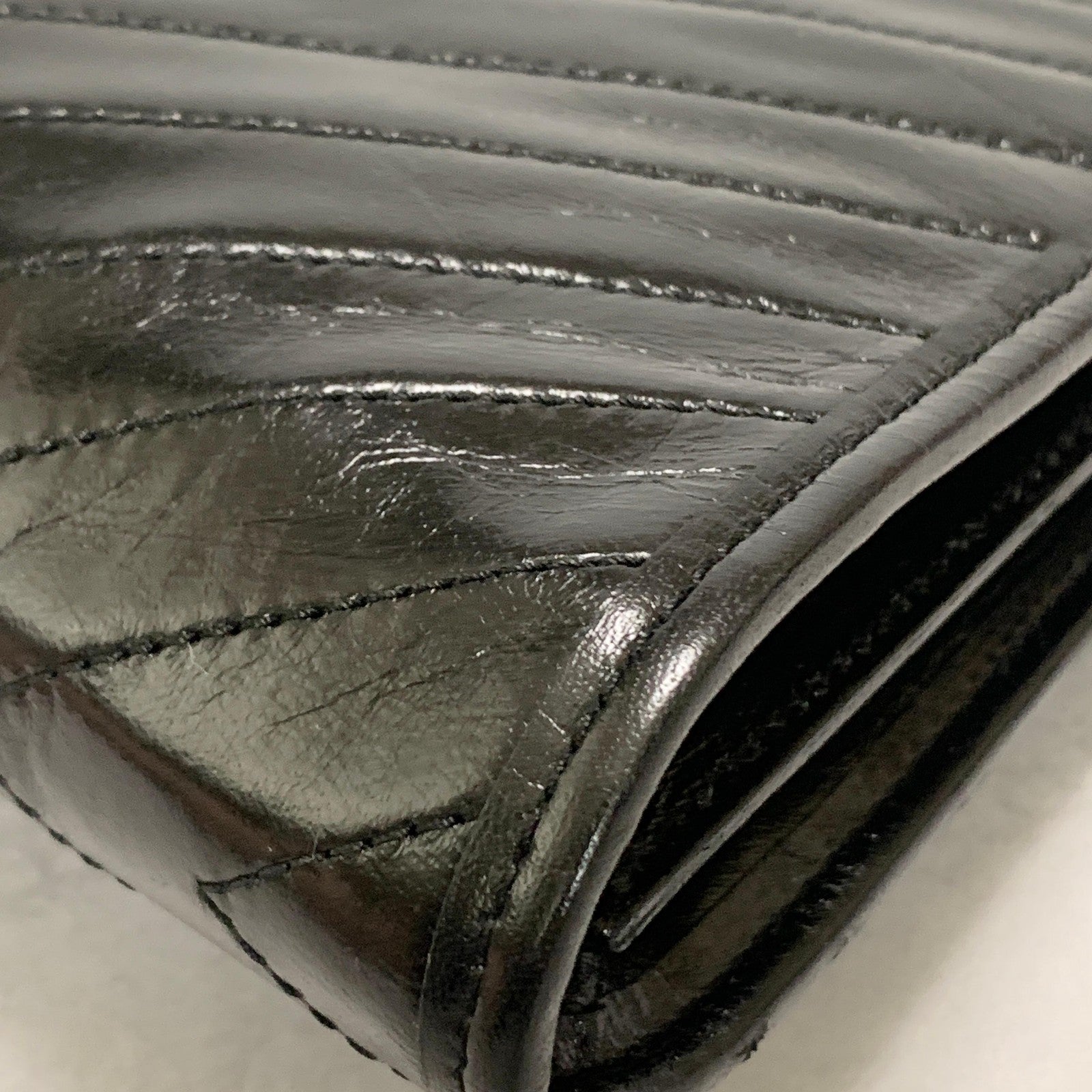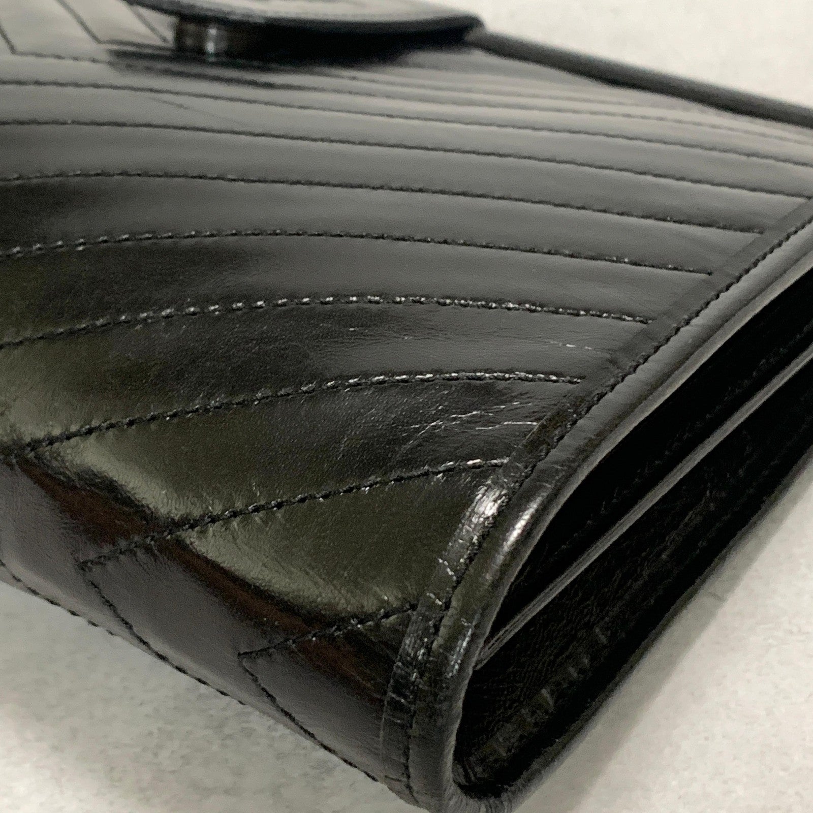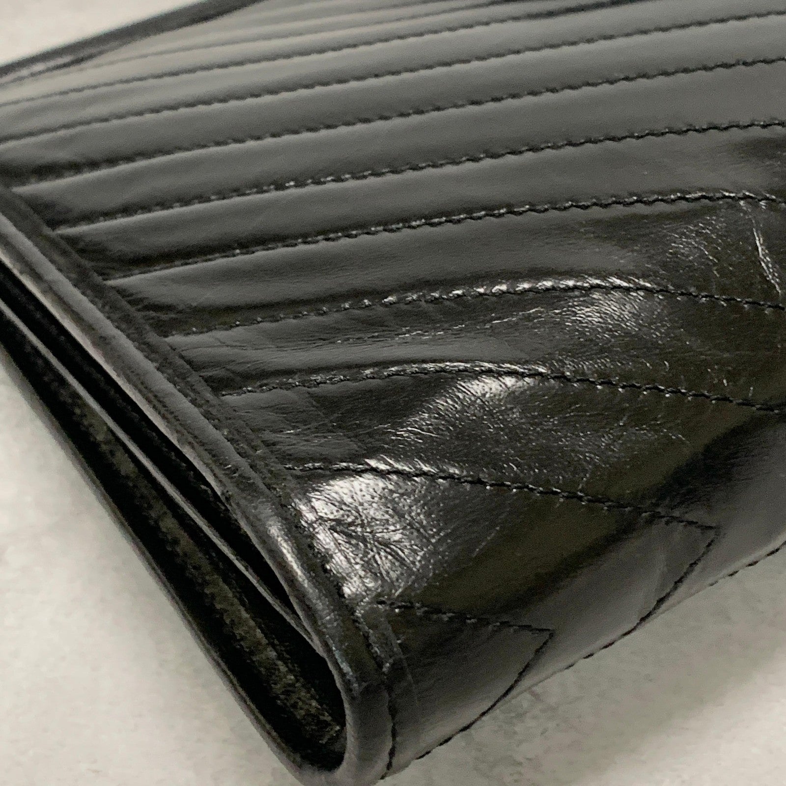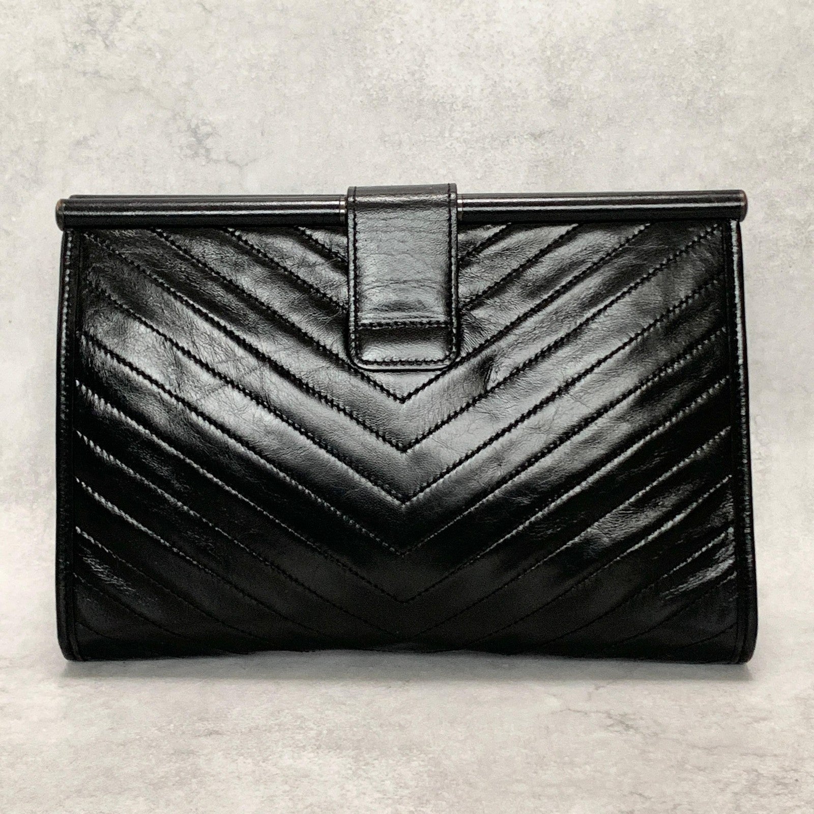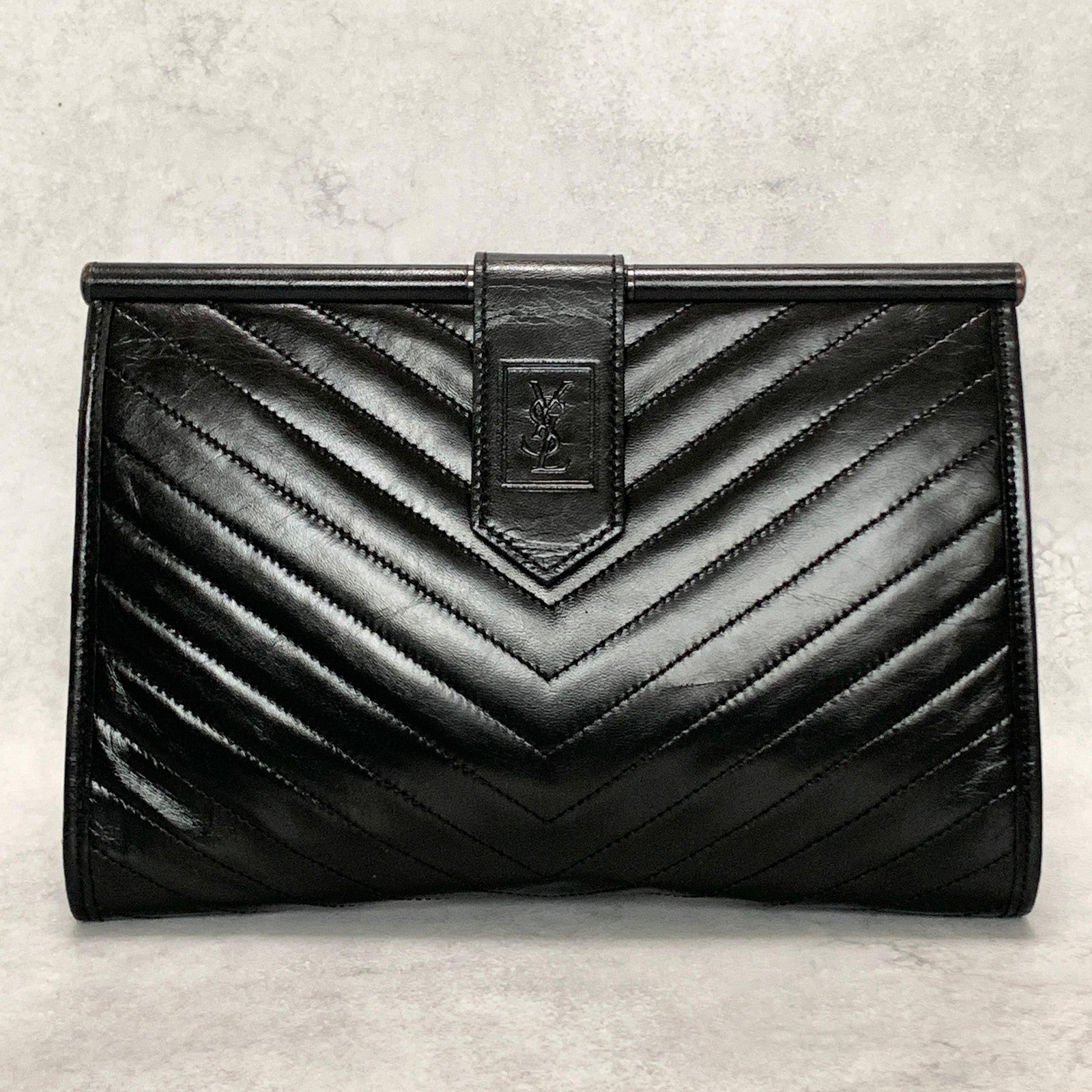Saint Laurent YSL Logo Clutch Bag Cassandra Purse Handbag Leather Black Auth