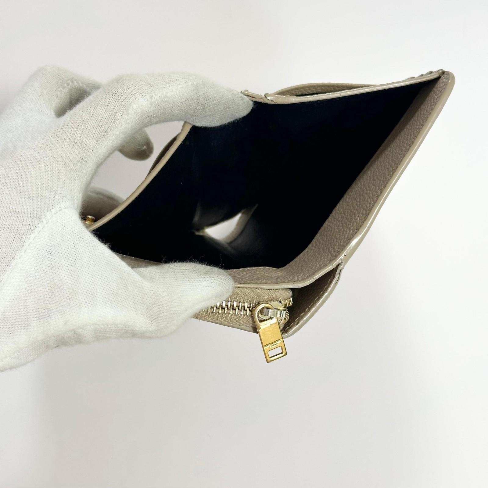 Saint Laurent YSL Wallet Cassandra Bi-fold Compact Leather Beige Gold Authentic