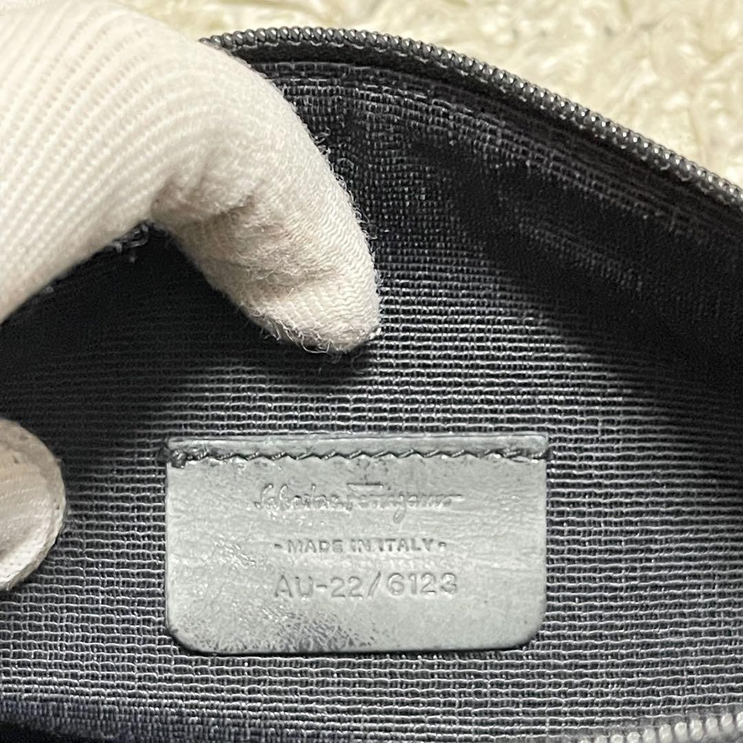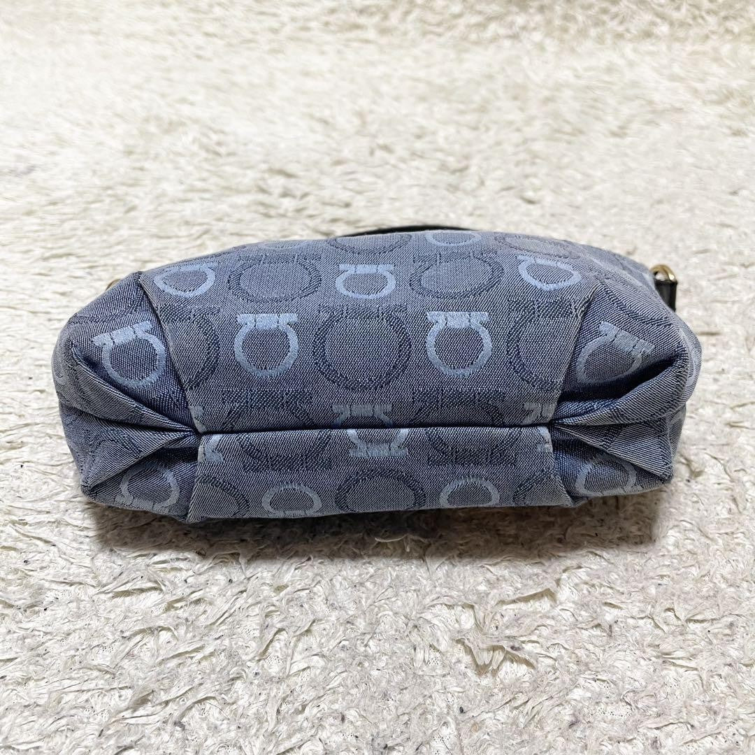 Salvatore Ferragamo Accessory Pouch Hand Tote Purse Gancini Canvas Leather Blue