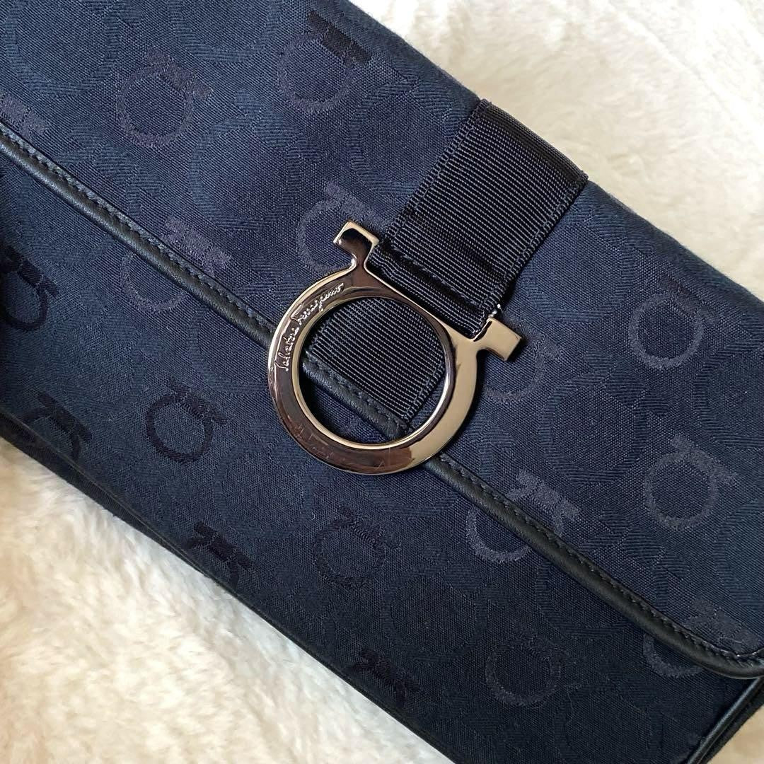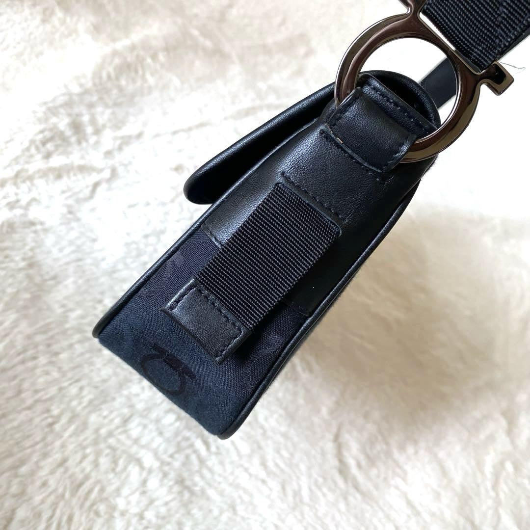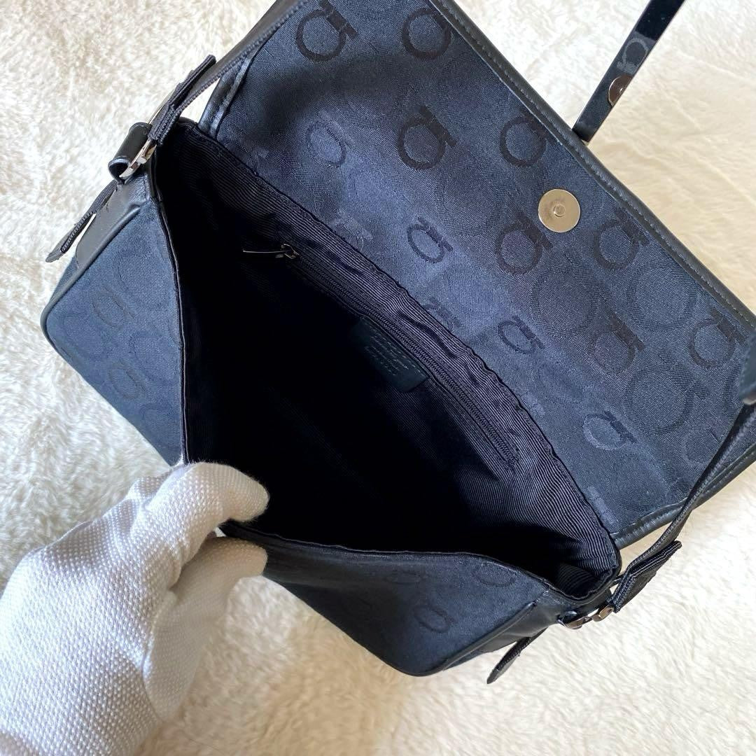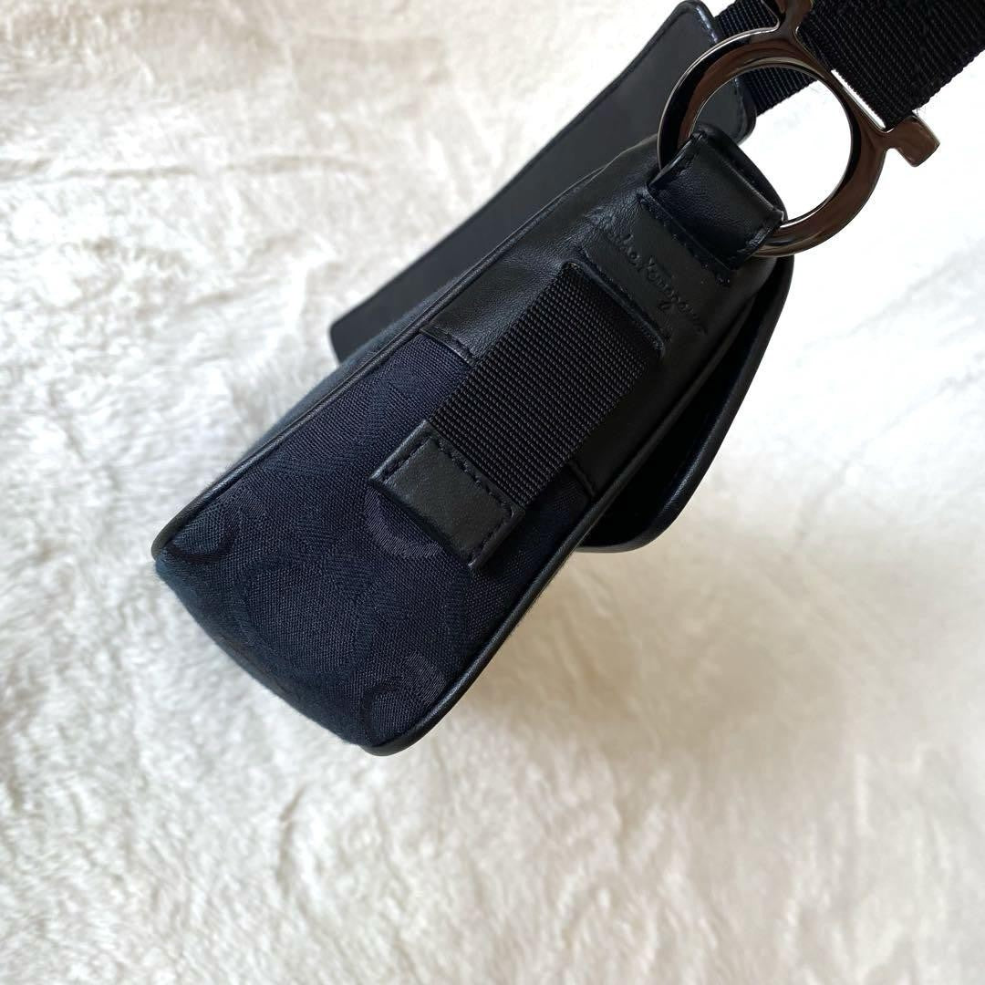 Salvatore Ferragamo Accessory Pouch Shoulder Bag Gancini Canvas Leather Black