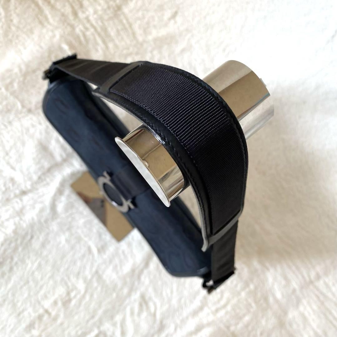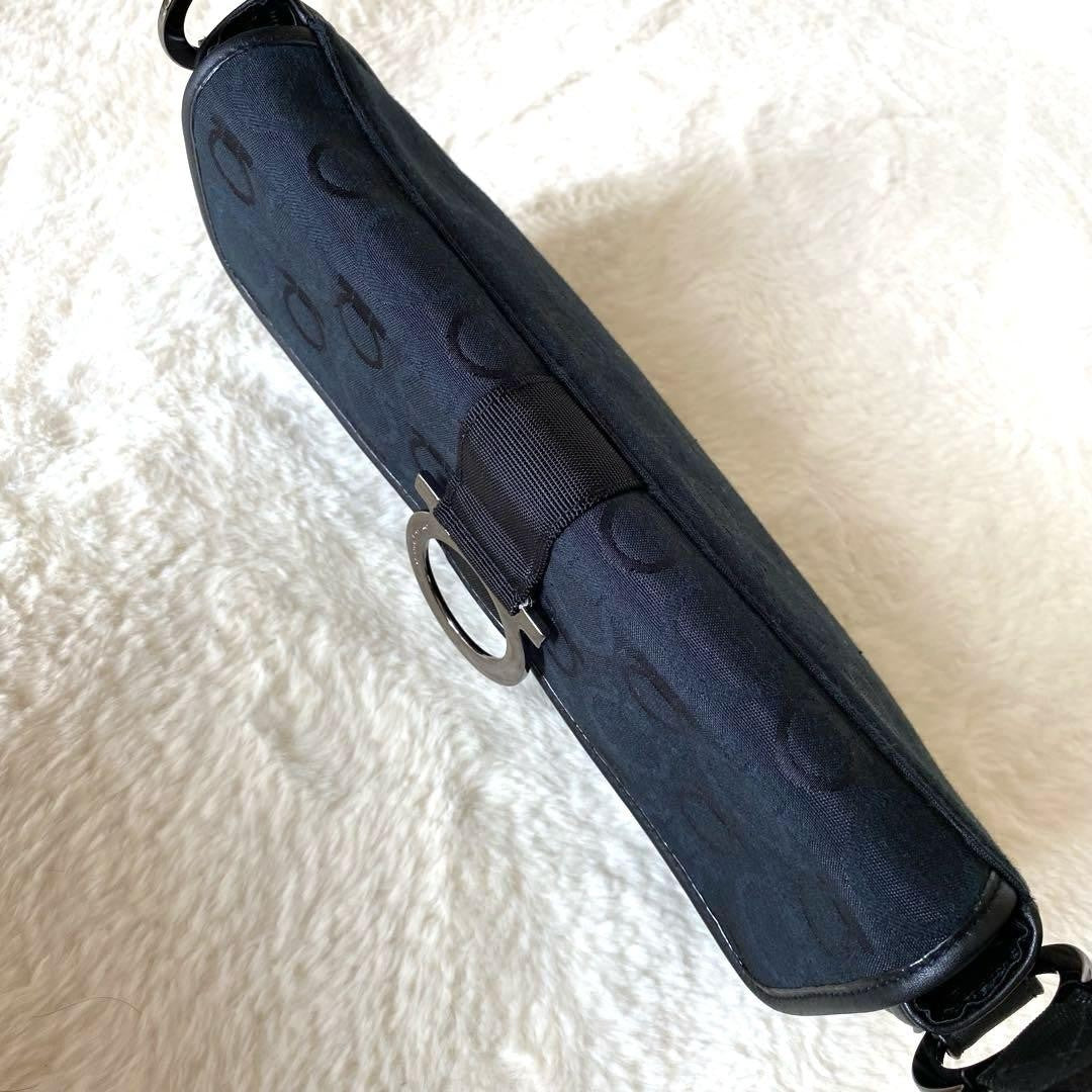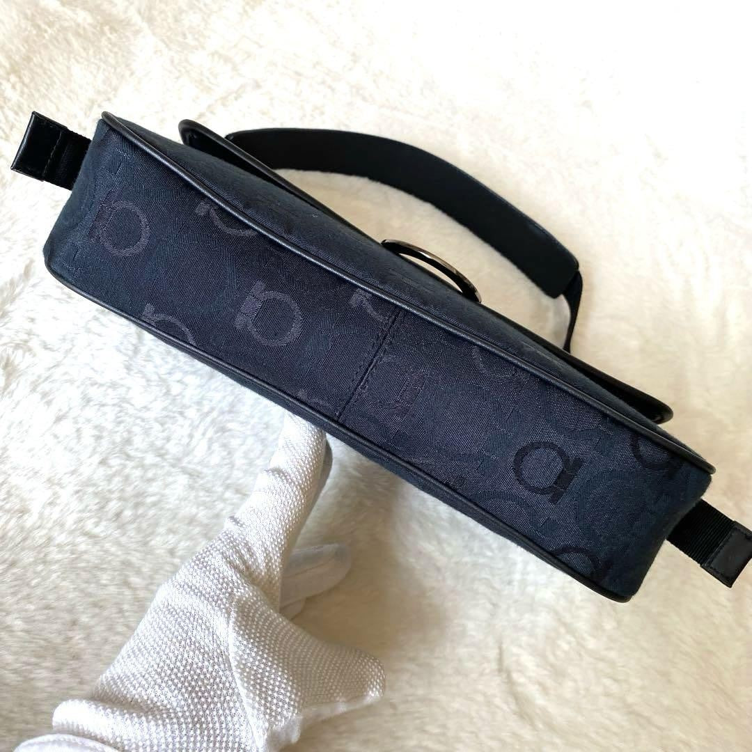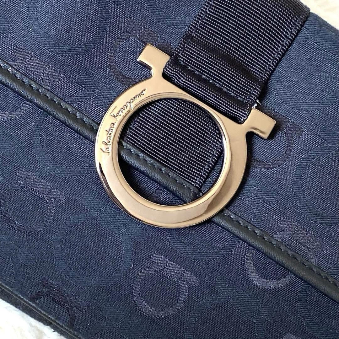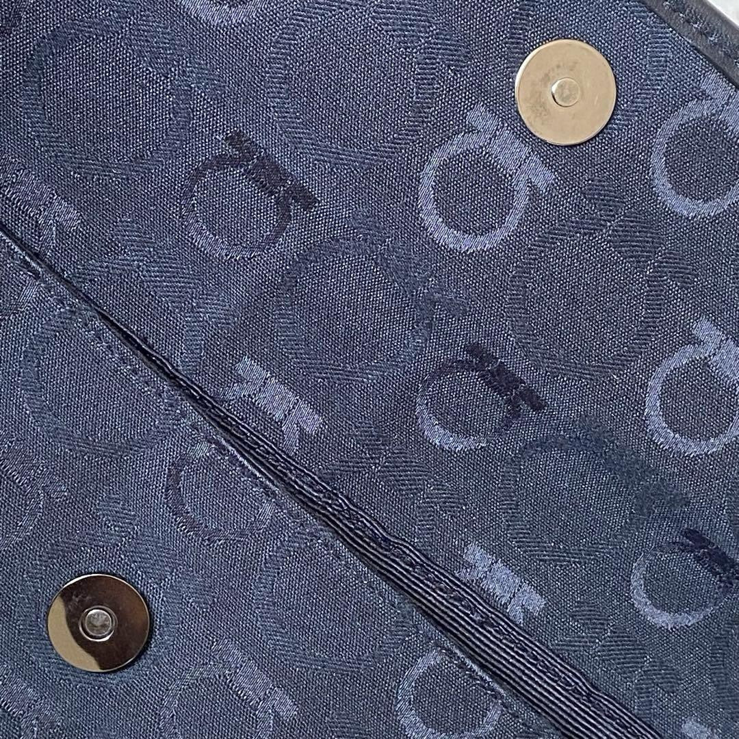 Salvatore Ferragamo Accessory Pouch Shoulder Bag Gancini Canvas Leather Black