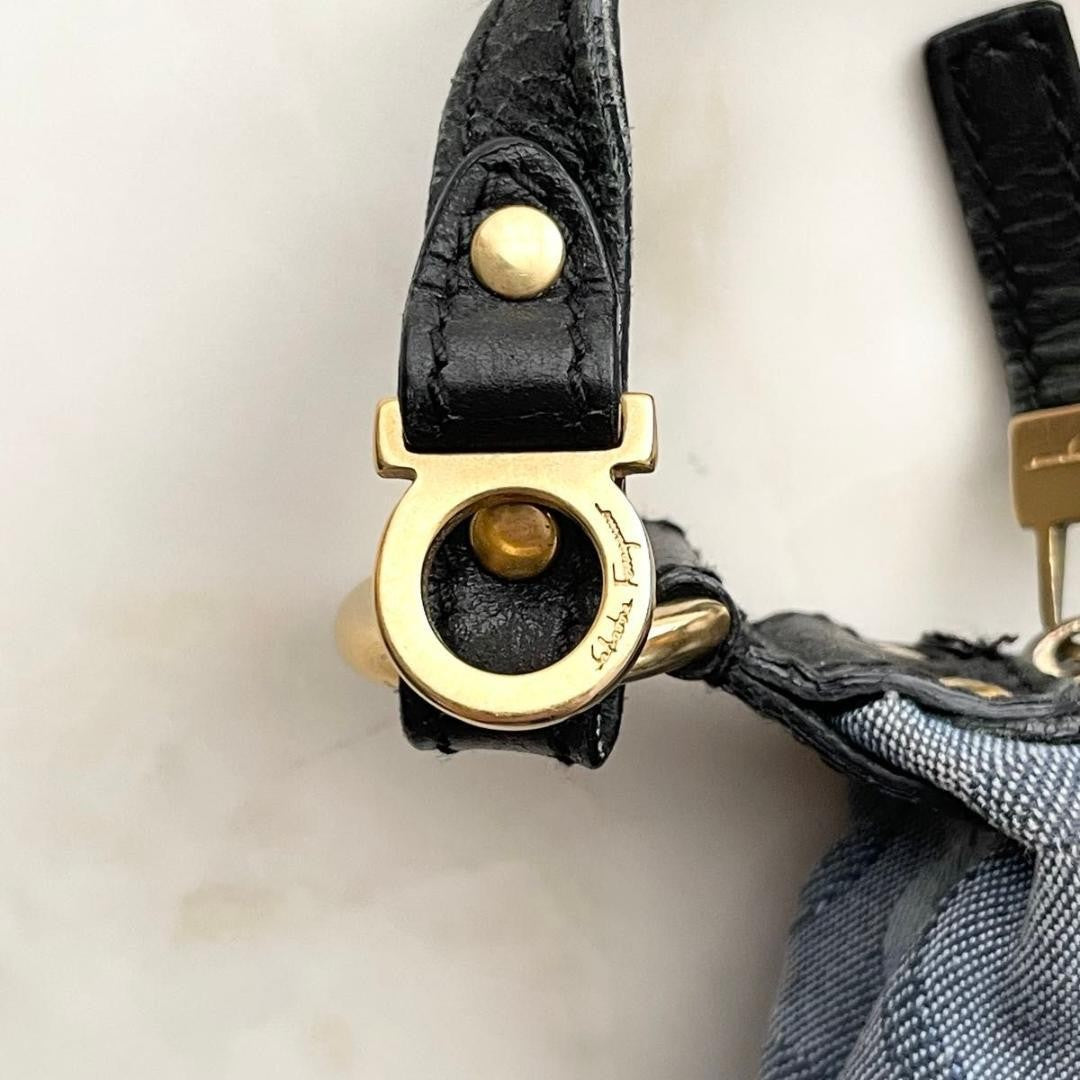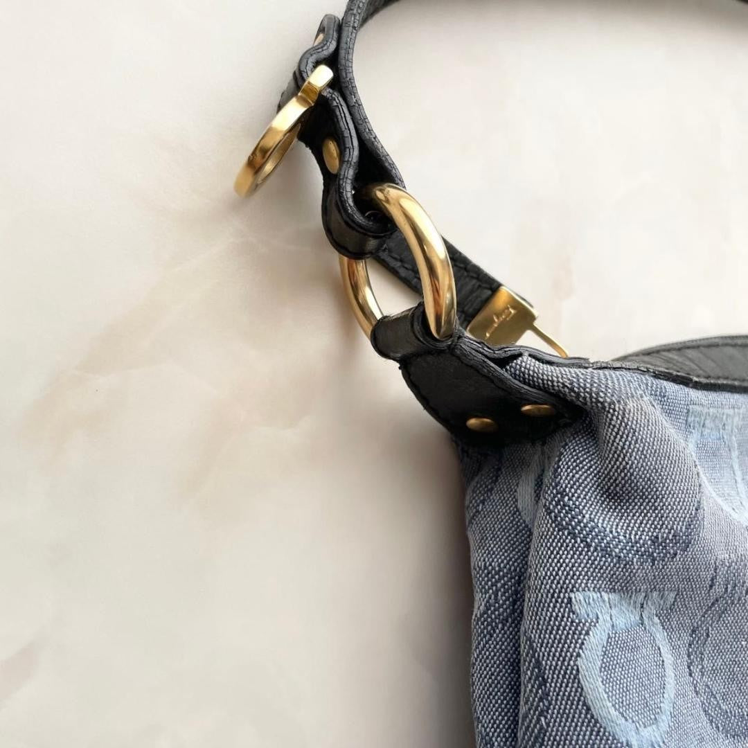 Salvatore Ferragamo Accessory Pouch Shoulder Bag Gancini Canvas Leather Blue