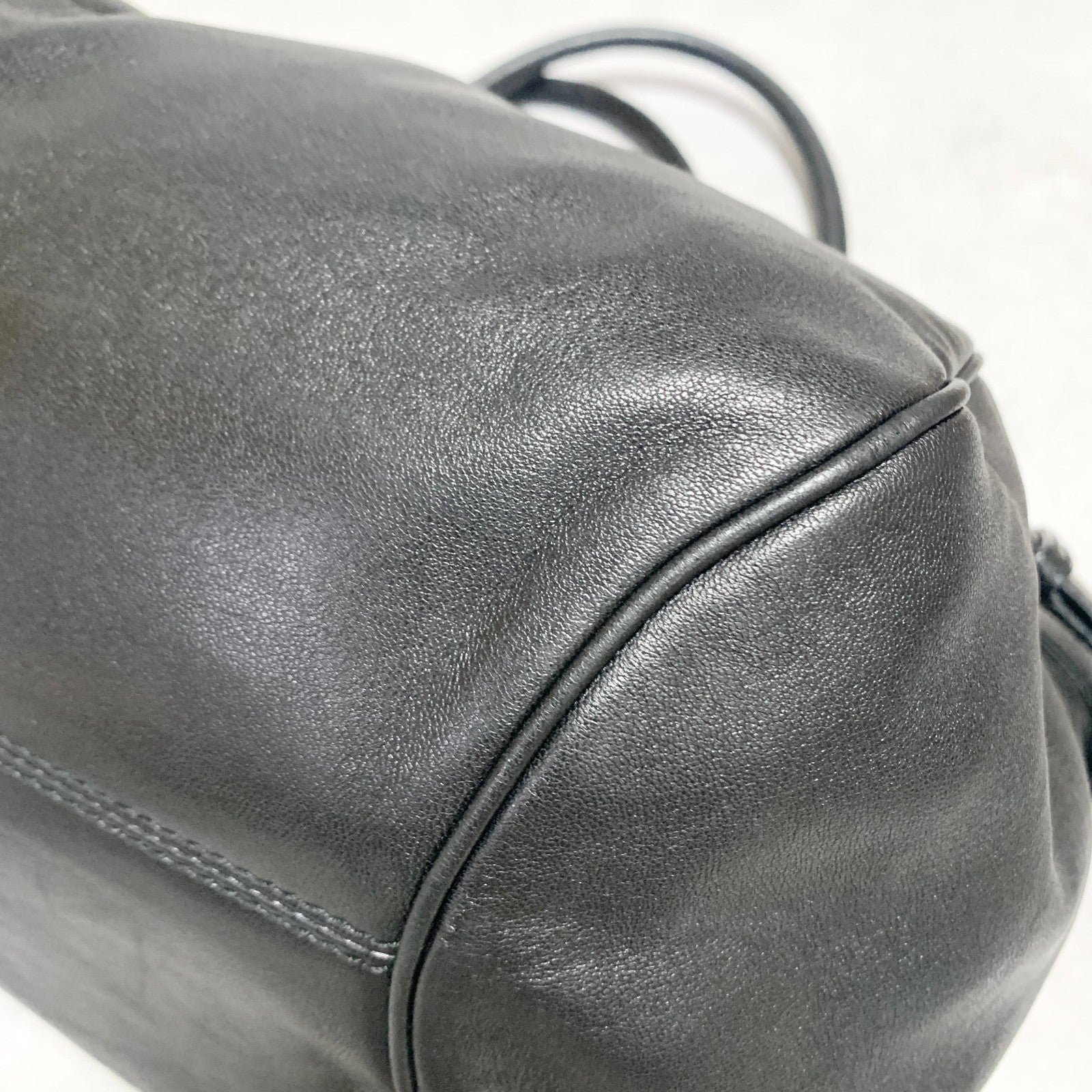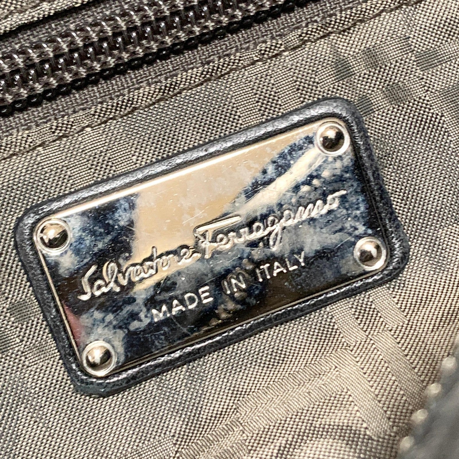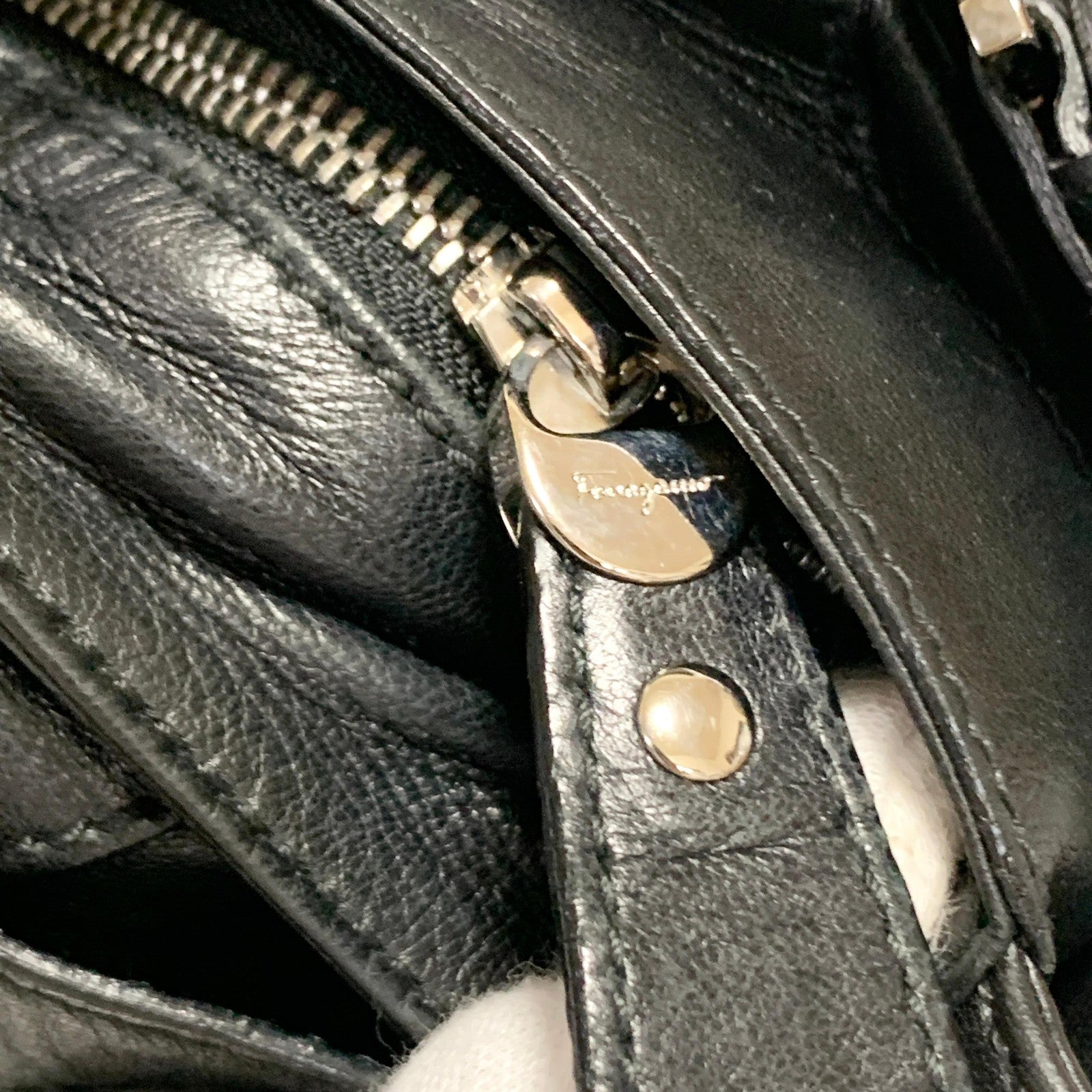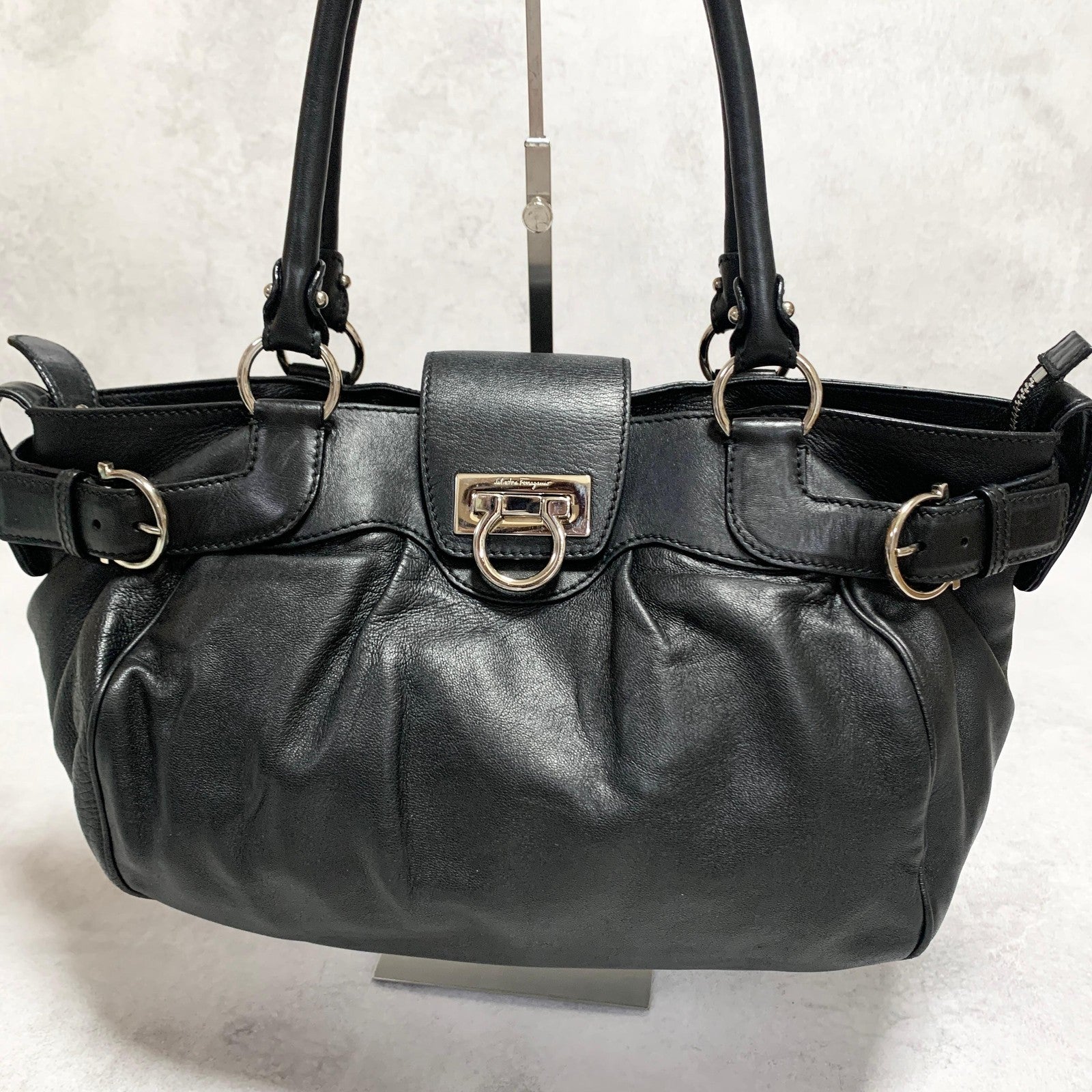 Salvatore Ferragamo Bag Gancini Hand Tote Purse Leather Black Silver Authentic