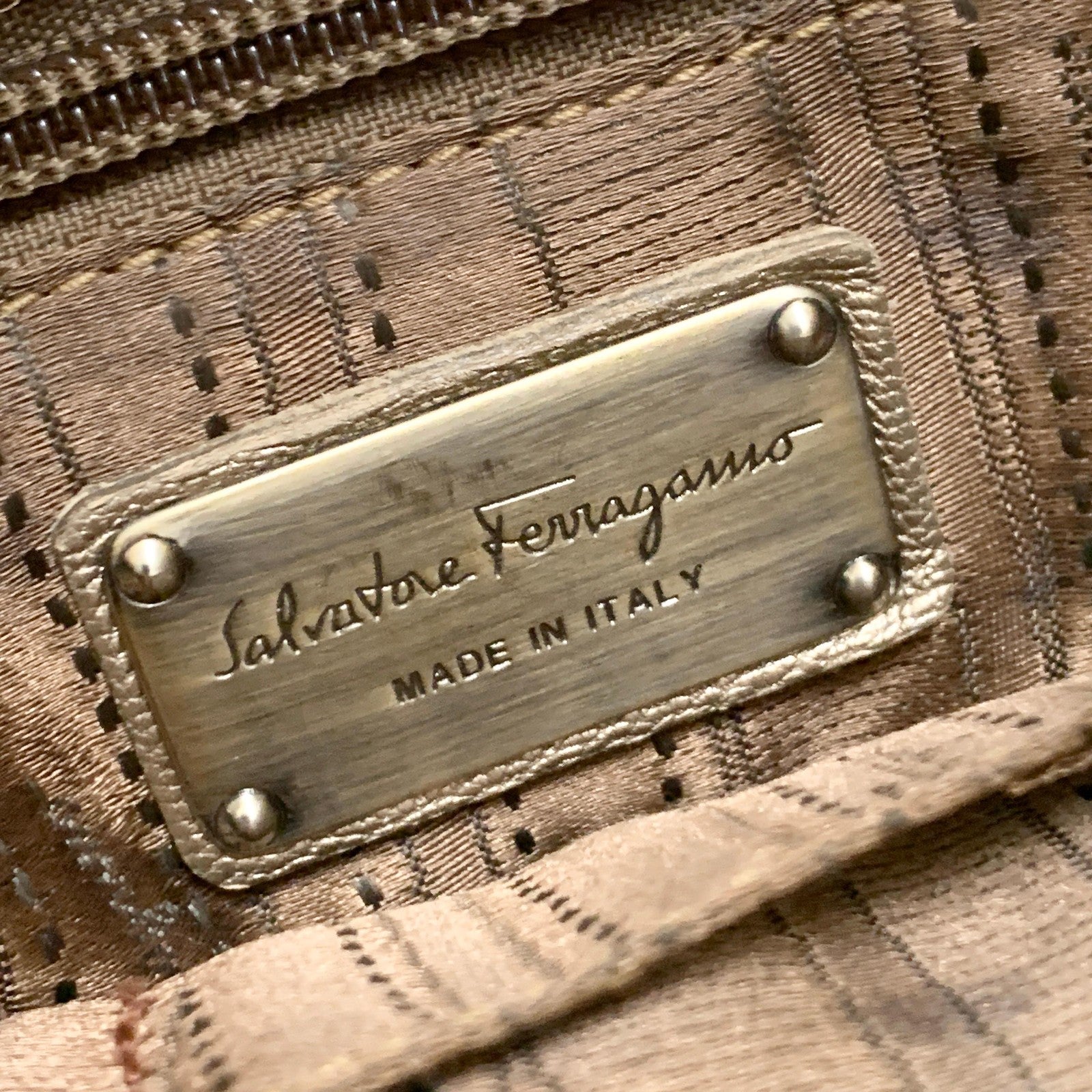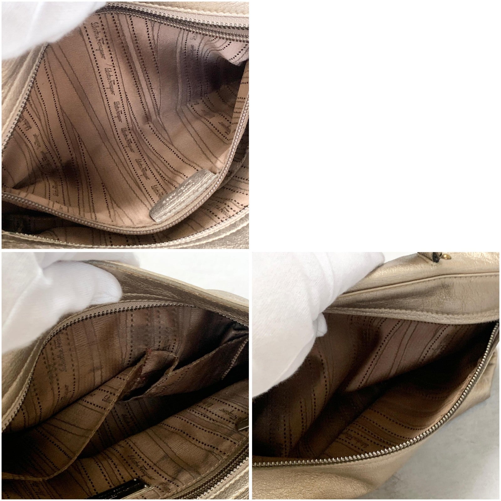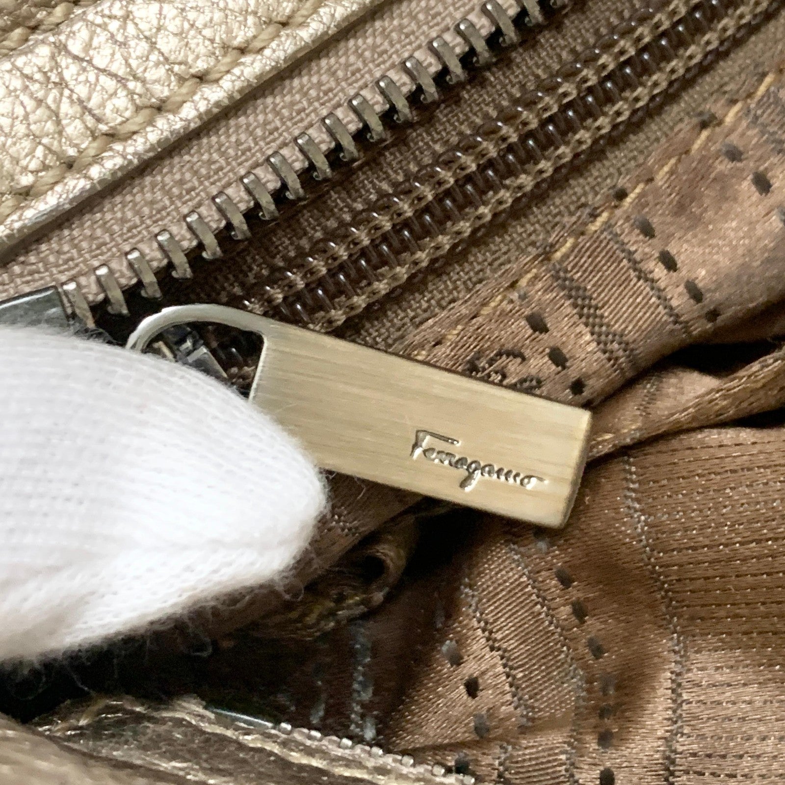 Salvatore Ferragamo Bag Sofia Gancini Shoulder Hand Tote Purse Leather Gold Auth