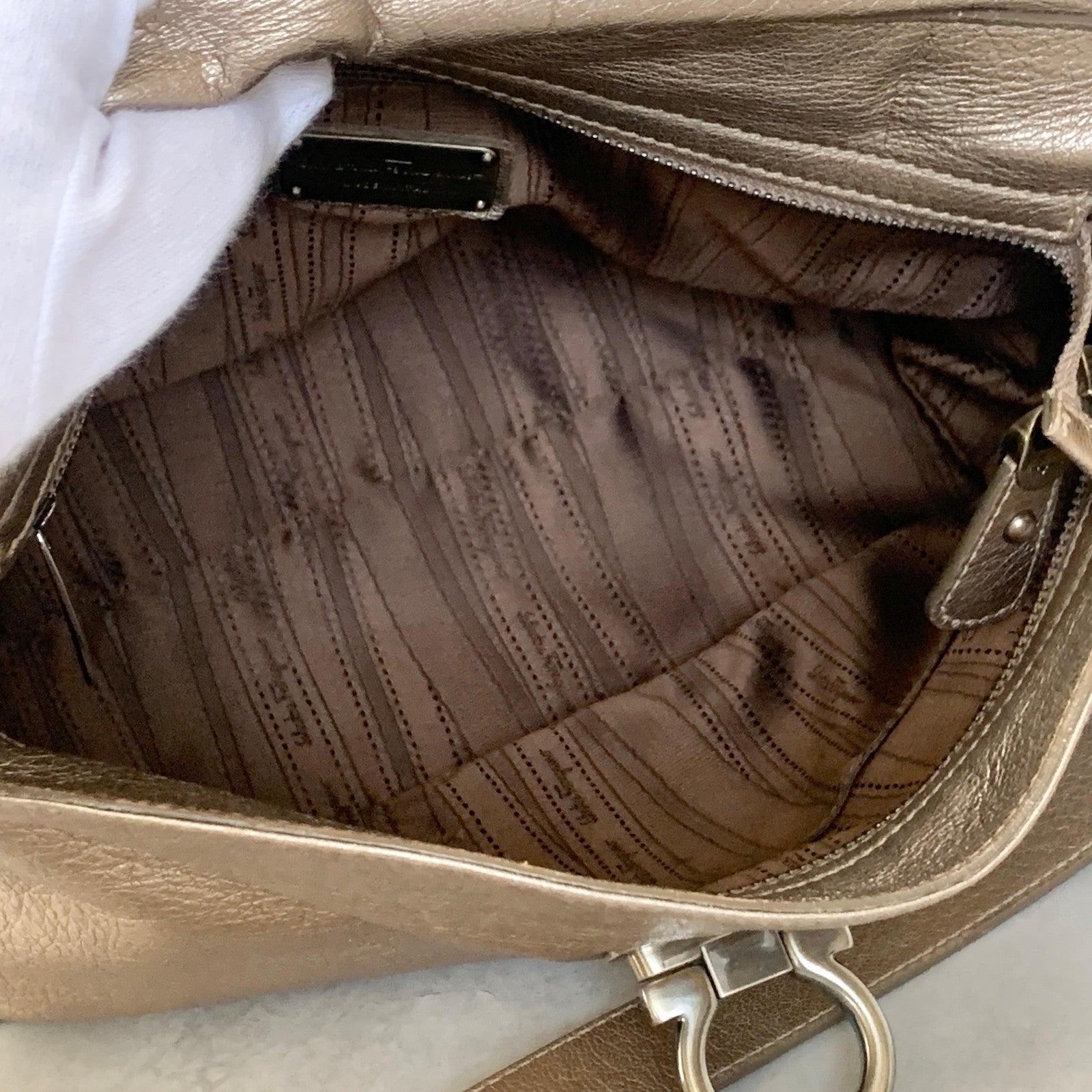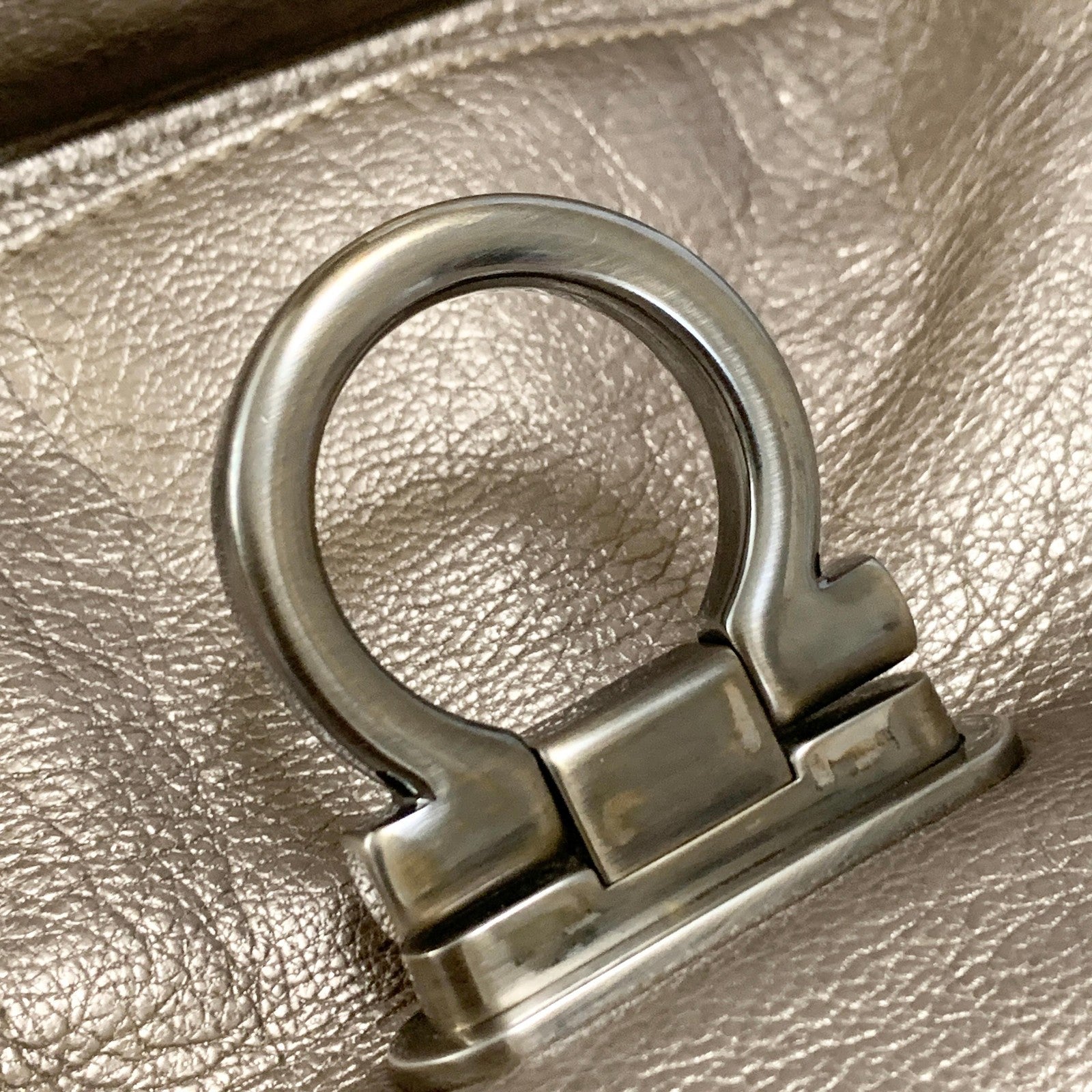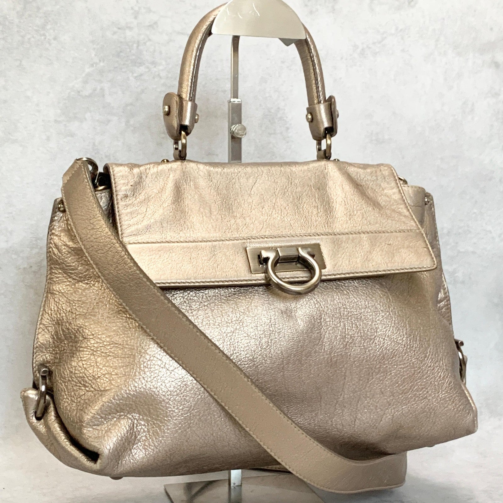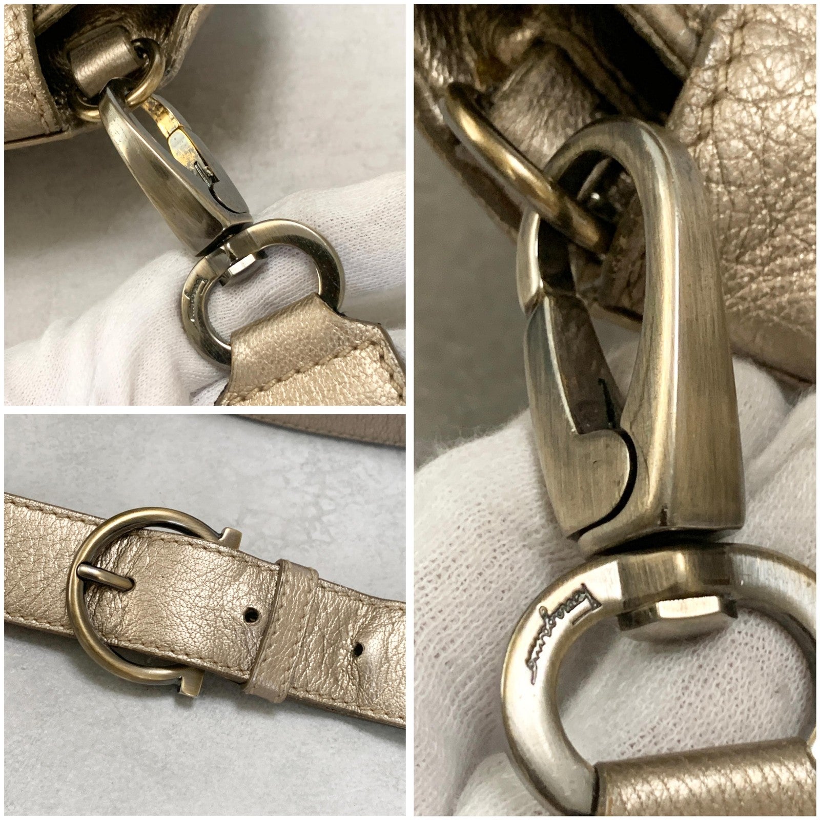 Salvatore Ferragamo Bag Sofia Gancini Shoulder Hand Tote Purse Leather Gold Auth