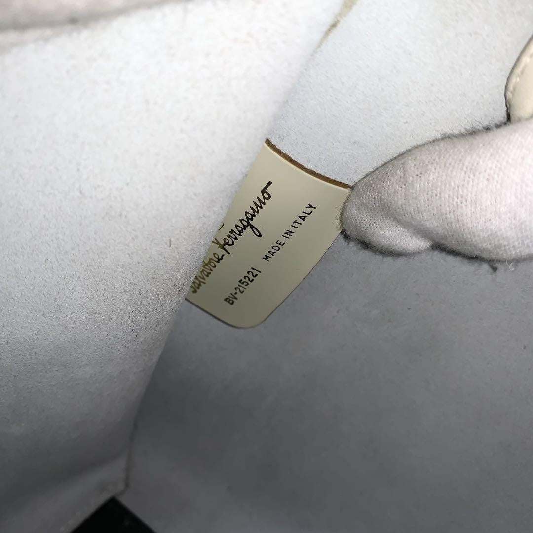 Salvatore Ferragamo Hand Bag Purse Gancini White Leather Authentic With pouch