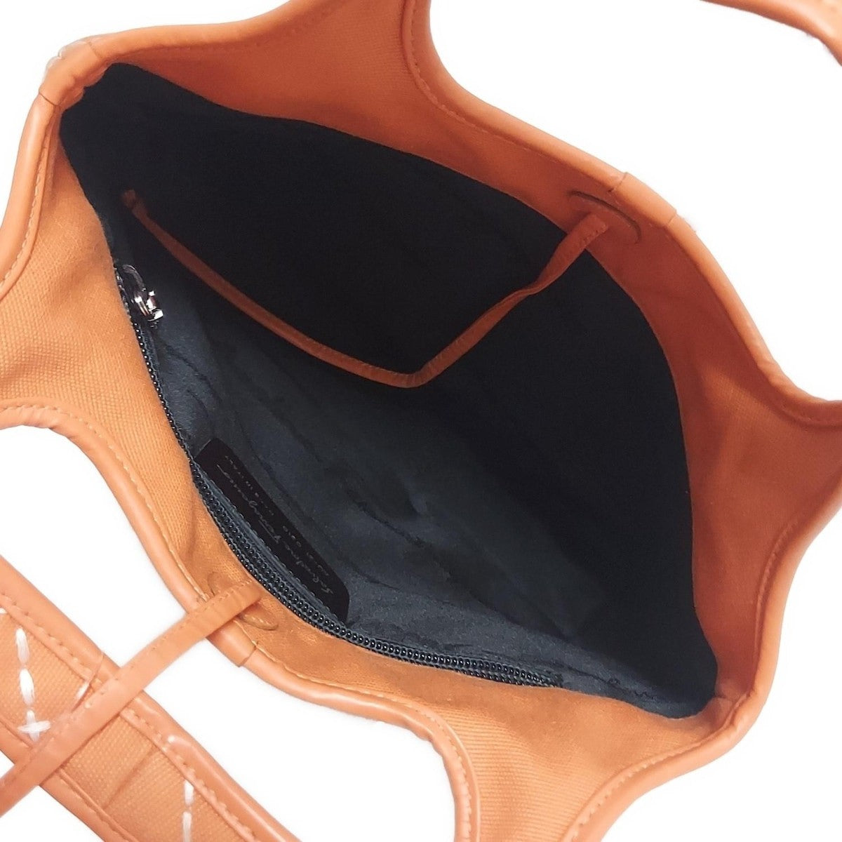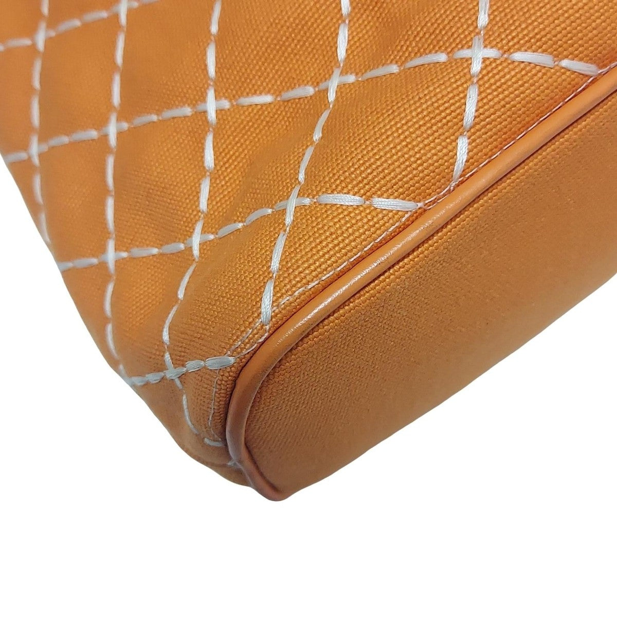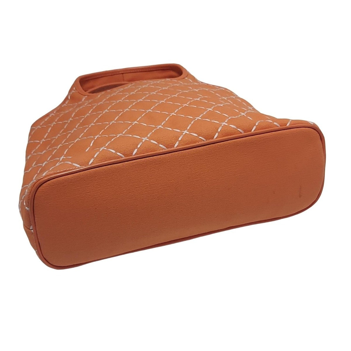 Salvatore Ferragamo Hand Bag Tote Purse Canvas Leather Orange White Authentic