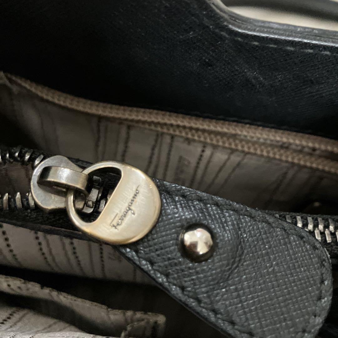 Salvatore Ferragamo Hand Bag Tote Purse Gancini Black Authentic