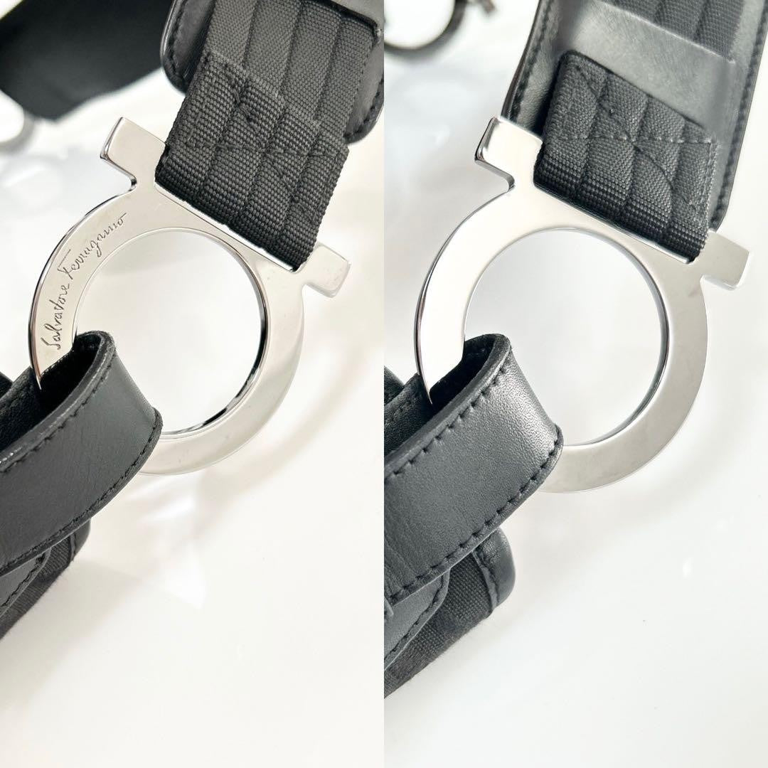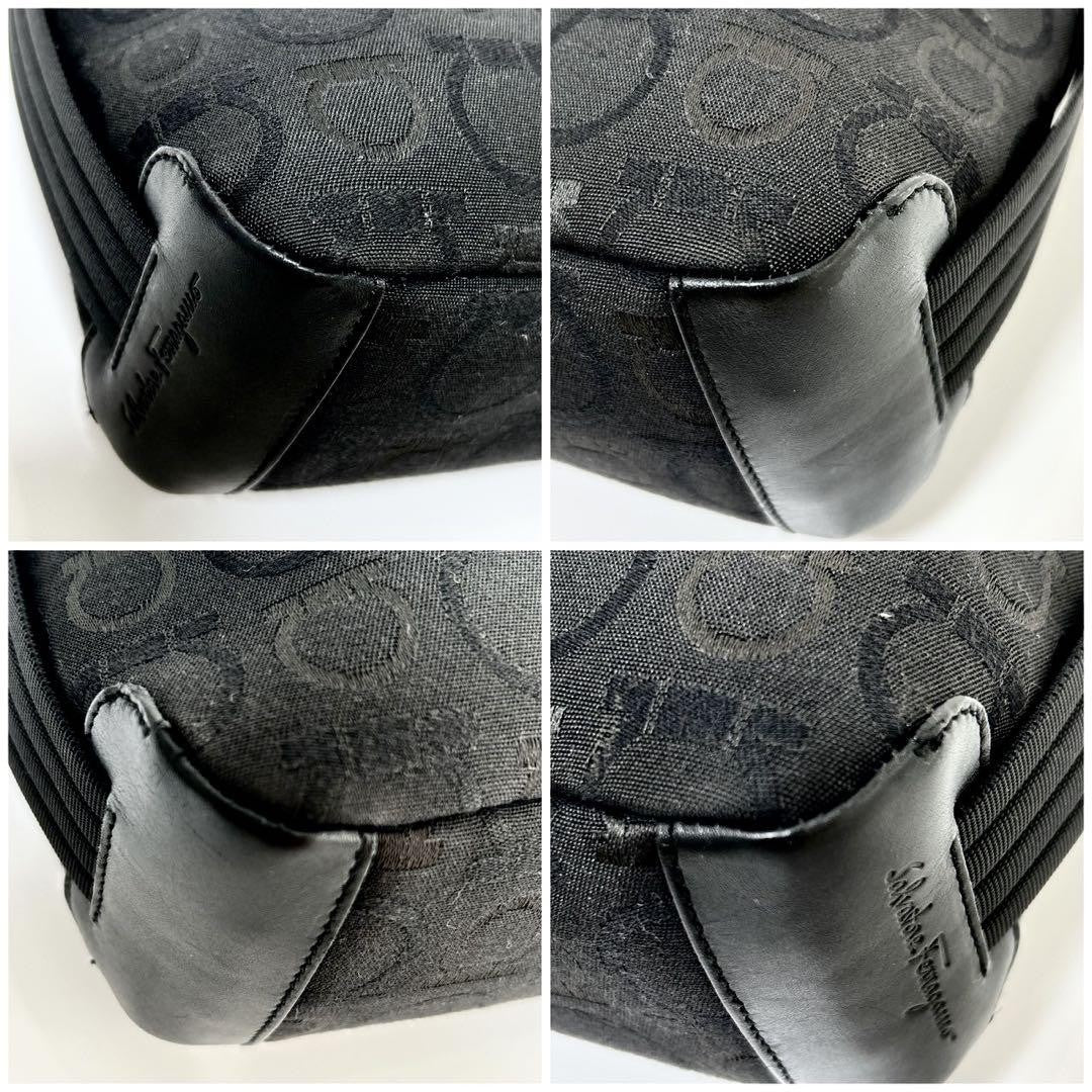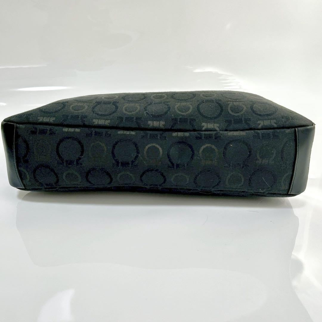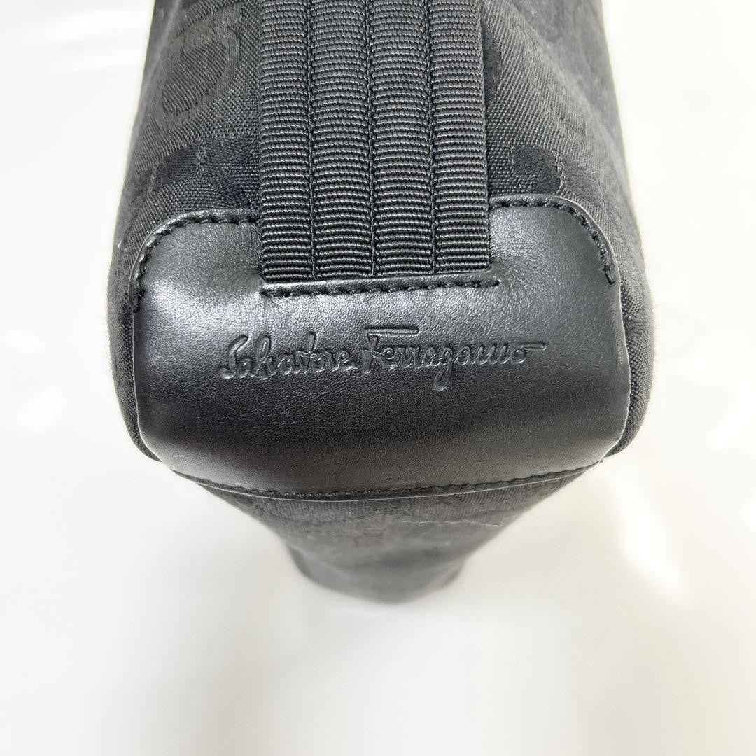 Salvatore Ferragamo Hand Bag Tote Purse Gancini Canvas Leather Black Authentic