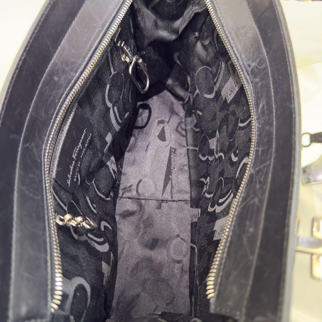 Salvatore Ferragamo Hand Bag Tote Purse Gancini Leather Authentic
