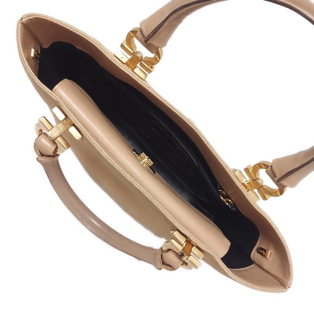 Salvatore Ferragamo Hand Bag Tote Purse Gancini Leather Beige Authentic