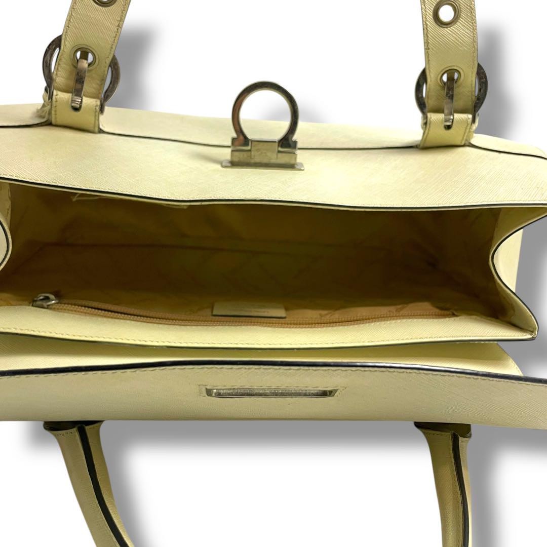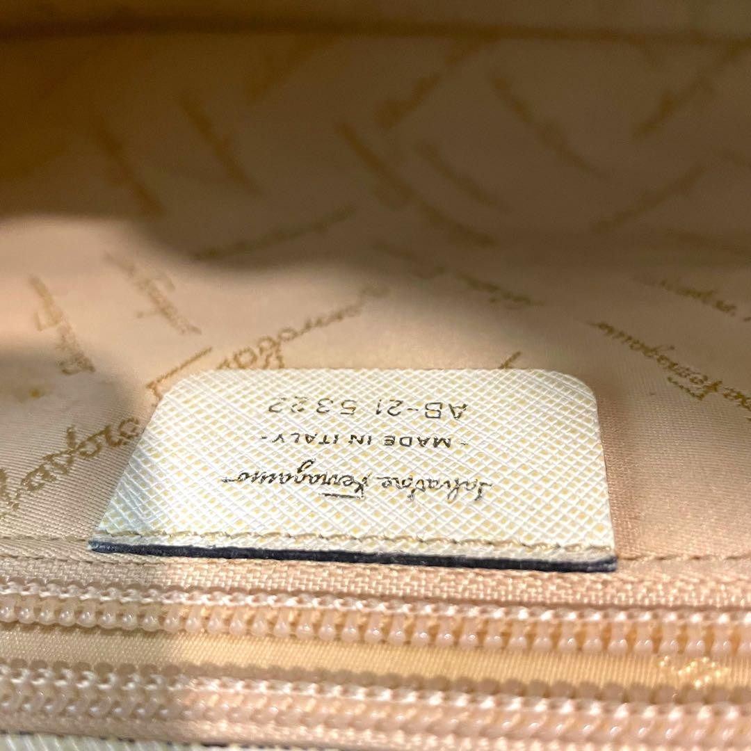 Salvatore Ferragamo Hand Bag Tote Purse Gancini Leather Beige Authentic