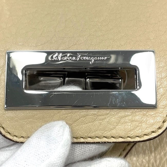 Salvatore Ferragamo Hand Bag Tote Purse Gancini Leather Beige Authentic
