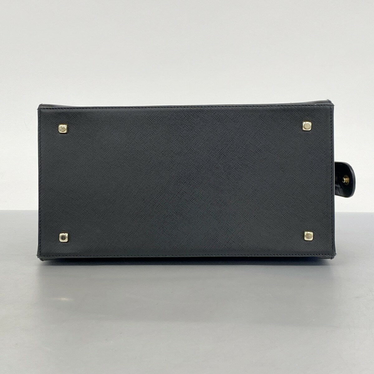 Salvatore Ferragamo Hand Bag Tote Purse Gancini Leather Black Authentic