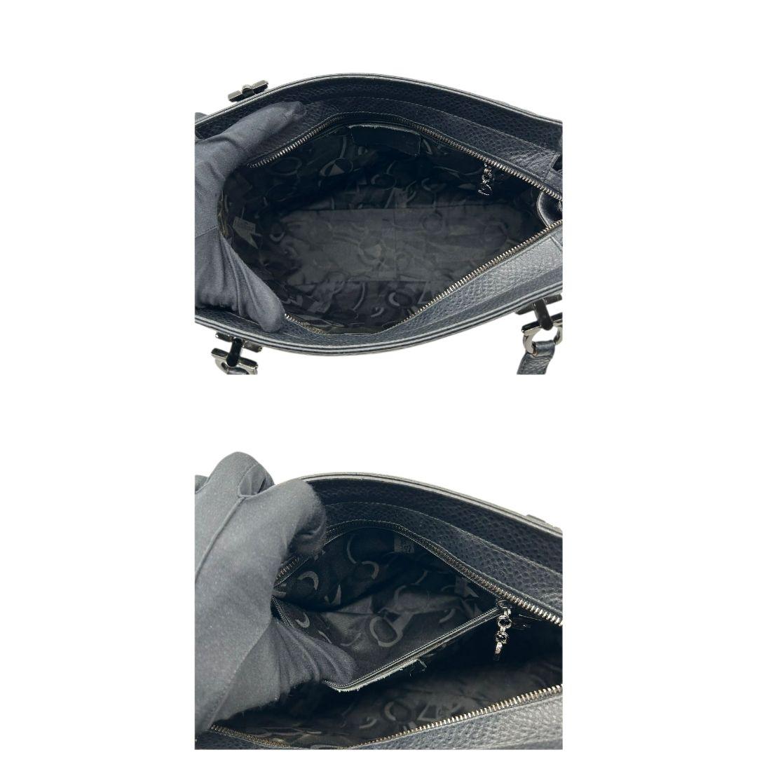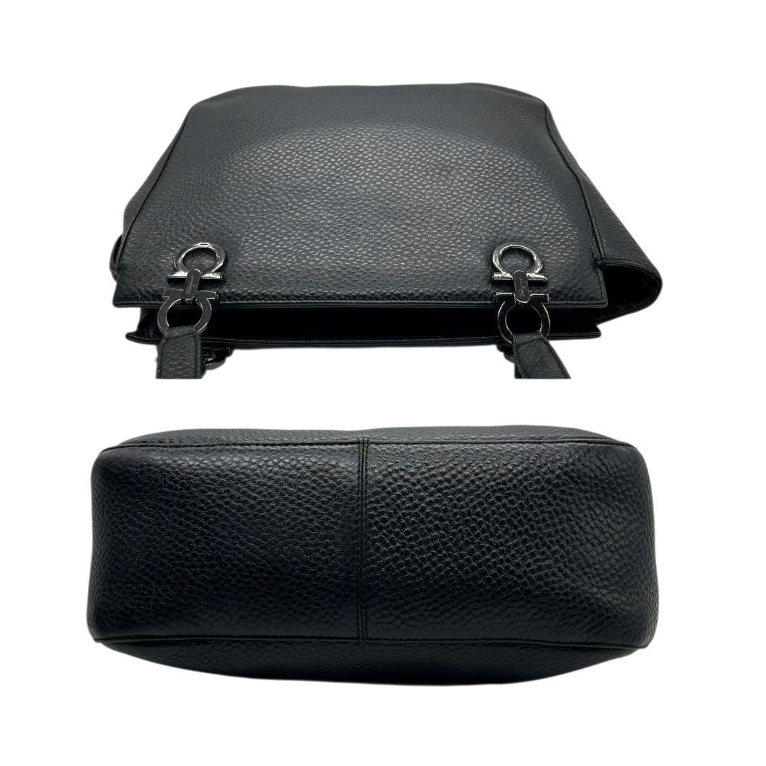 Salvatore Ferragamo Hand Bag Tote Purse Gancini Leather Black Authentic