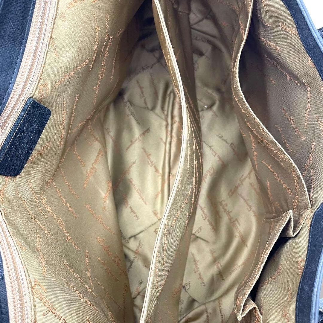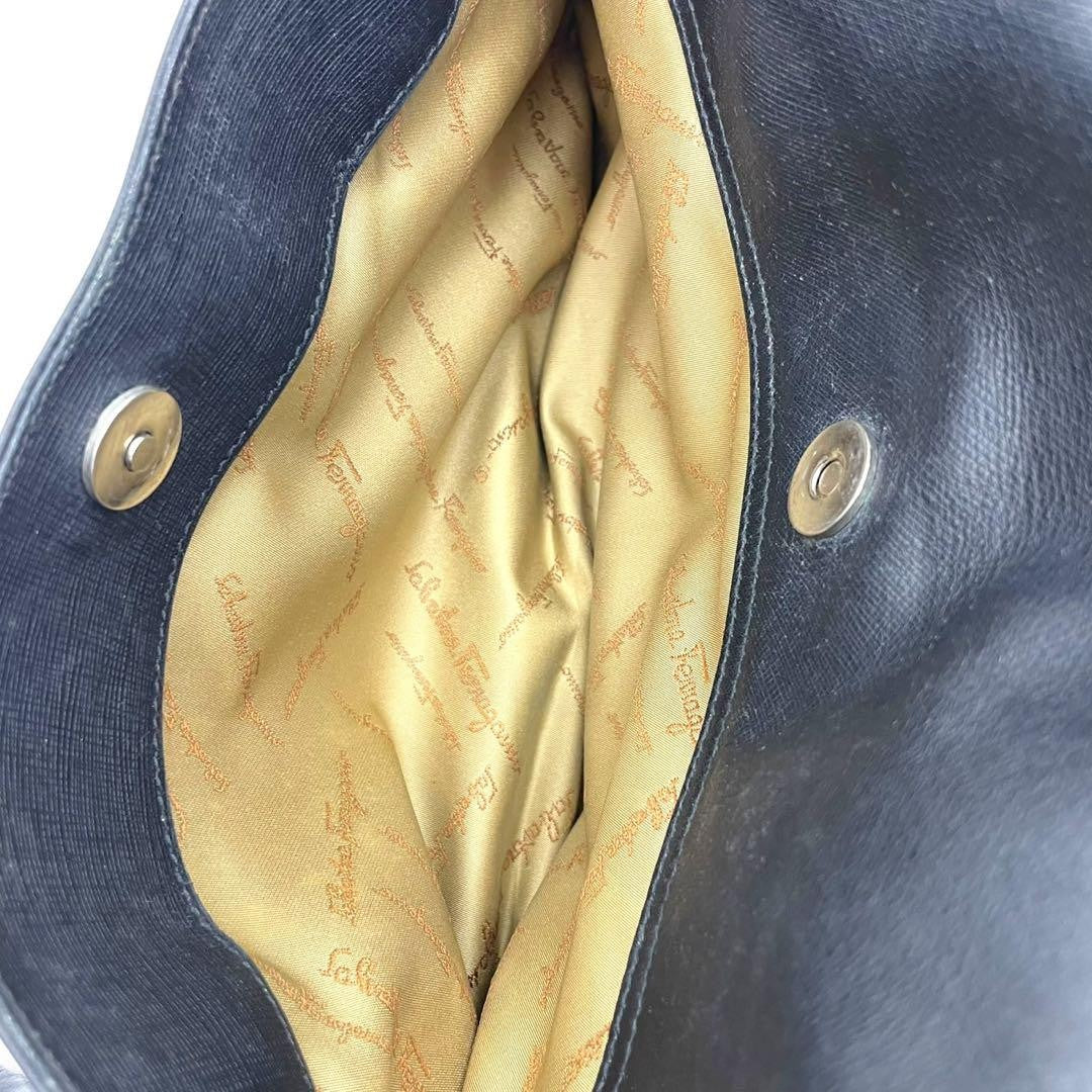 Salvatore Ferragamo Hand Bag Tote Purse Gancini Leather Black Authentic