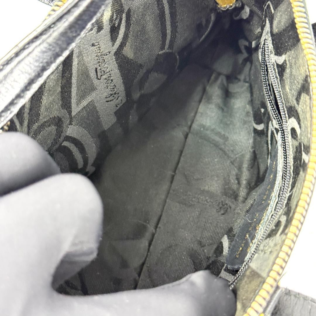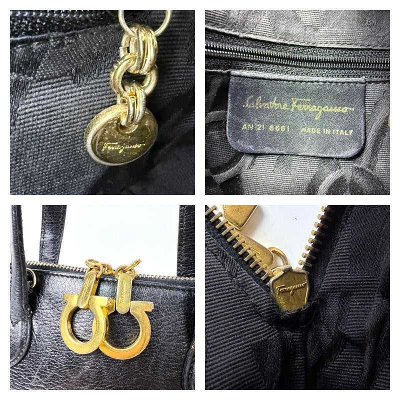 Salvatore Ferragamo Hand Bag Tote Purse Gancini Leather Black Authentic